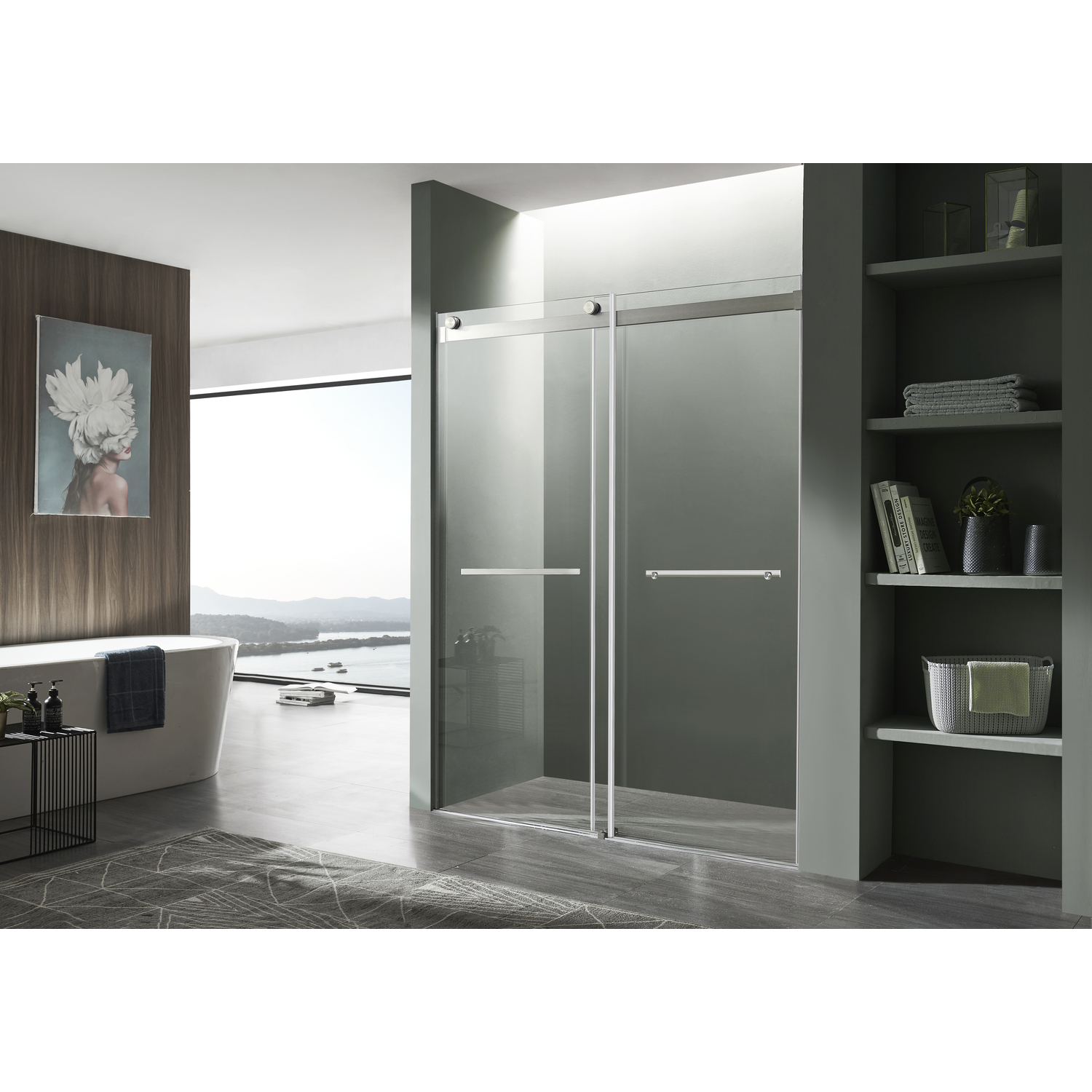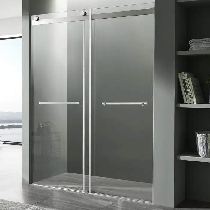 - The ultramodern frameless design with double sliding doors gives your shower a premium look