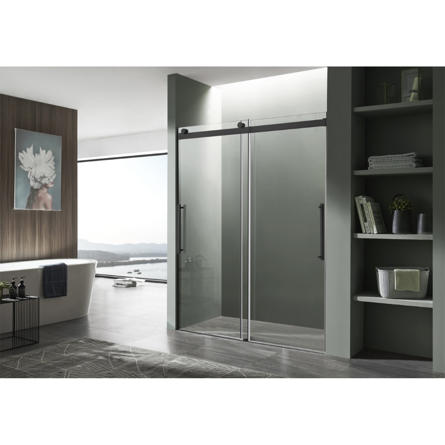 - The ultramodern frameless design with double sliding doors gives your shower a premium look