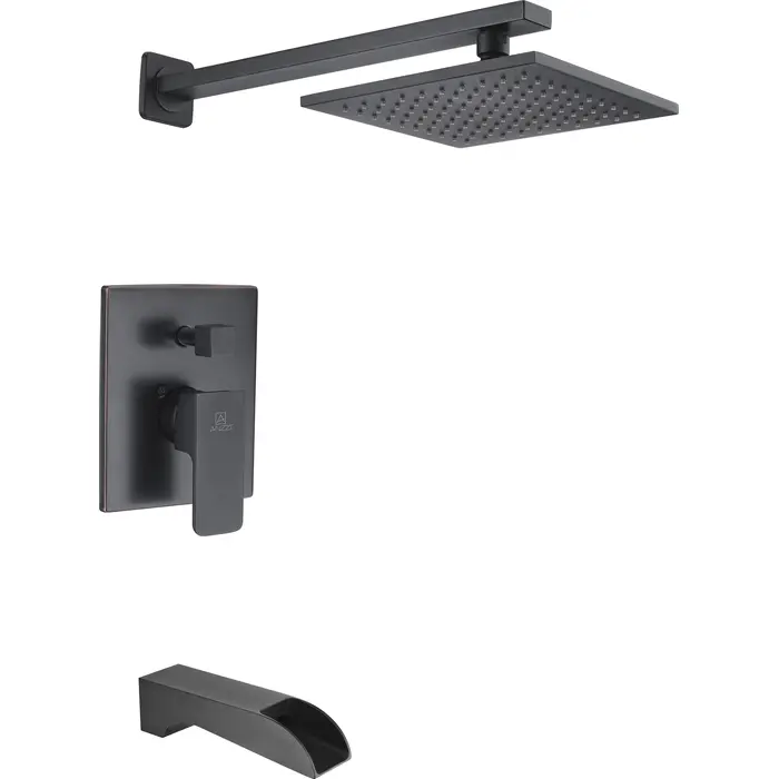 ANZZI is committed to introducing the latest in European bath fixture design to the North American home. ANZZI presents the Mezzo Series Single handle Wall mounted showerhead and bath faucet set. Crafted using lead-free RHINO ALLOY certified brass as the interior and our Matte Black rust resistant finish. This all metal combination of high quality materials ensures you will enjoy a flawlessly performing faucet for many years to come. The deceptively simple single handle design allows for complete and easy control of both water flow and temperature while maintain the fine minimalist aesthetic to match with any modern or contemporary décor style. The Heavy Rain showerhead provides a powerful and deeply refreshing full body shower. The ANZZI Mezzo Series is listed certified under cUPC for installation within North America.Matte Black finishRHINO ALLOY certified lead-free solid brass with rust resistant finishSingular (1) lever handle controlHeavy Rain showerhead technologyModern European inspired design brought to life through precision German engineeringSpout Reach: 7.46 in.; Showerhead Diameter: 7.99 in.Flow Rate: 1.8 gpm flow ratecUPC certified and listed for North AmericaLimited Lifetime WarrantyTo speak to a knowledgeable and dedicated ANZZI specialist simply call 1-844-44-ANZZI or visit us on the web at www.ANZZI.com