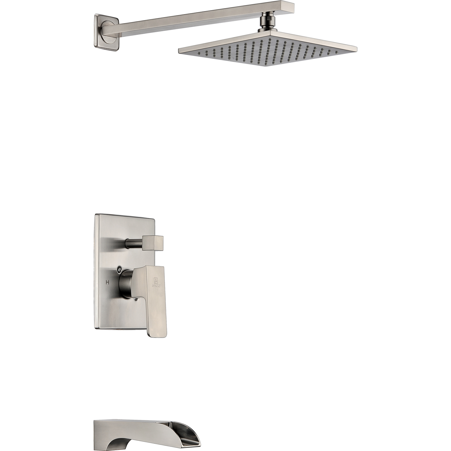 ANZZI is committed to introducing the latest in European bath fixture design to the North American home. ANZZI presents the Mezzo Series Single handle Wall mounted showerhead and bath faucet set. Crafted using lead-free RHINO ALLOY certified brass as the interior and our Traditional Brushed Nickel rust resistant finish. This all metal combination of high quality materials ensures you will enjoy a flawlessly performing faucet for many years to come. The deceptively simple single handle design allows for complete and easy control of both water flow and temperature while maintain the fine minimalist aesthetic to match with any modern or contemporary décor style. The Heavy Rain™ showerhead provides a powerful and deeply refreshing full body shower. The ANZZI Mezzo Series is listed certified under cUPC for installation within North America.Traditional Brushed Nickel finishRHINO ALLOY certified lead-free solid brass with rust resistant finishSingular (1) lever handle controlHeavy Rain showerhead technologyModern European inspired design brought to life through precision German engineeringSpout Reach: 7.46 in.; Showerhead Diameter: 7.99 in.Flow Rate: 1.8 gpm flow ratecUPC certified and listed for North AmericaMarine grade quality ceramic disk valve includeShips from factory within 24 hours once order is processedLifetime WarrantyTo speak to a knowledgeable and dedicated ANZZI specialist simply call 1-844-44-ANZZI or visit us on the web at www.ANZZI.com