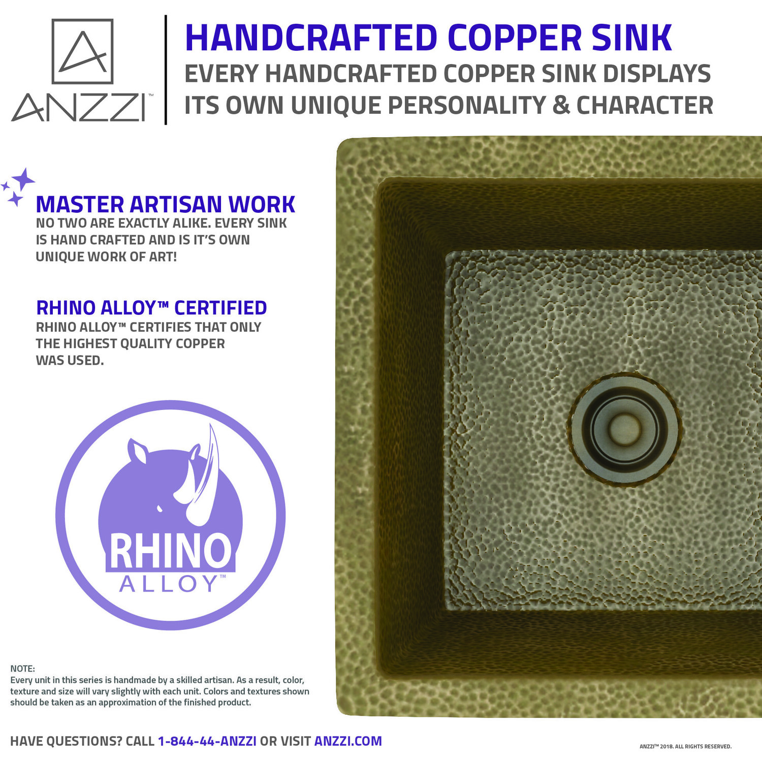 ANZZI presents the latest trending in modern antique Erzurum series drop-in kitchen sink. Each Erzurum kitchen sinks are handcrafted using only Rhino Alloy certified artisan copper. This drop-in sink is perfect center piece for your kitchen. Become a member of the ANZZI family and experience why Perfection is our Tradition.Single bowl kitchen sinkShips within 24 hours of order processingEvery piece is fully handmade from start to finishCrafted using RHINO ALLOY certified copperLimited lifetime warranty from manufacturer defectsHandmade process will result in subtle variations in color, shape and finishMatching stopper and basin grid includedOne piece constructionTo speak to a knowledgeable and dedicated ANZZI specialist simply call 1-844-44-ANZZI or visit us on the web at www.ANZZI.com