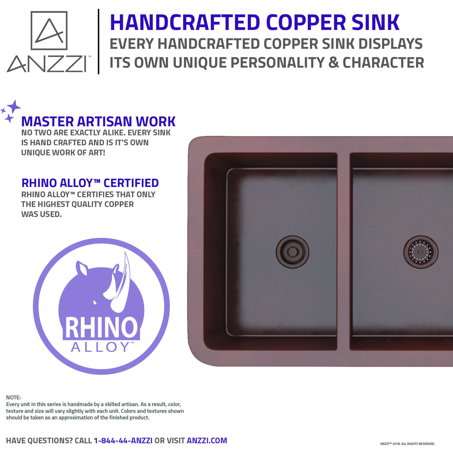 ANZZI presents the latest trending in modern antique Dalmatia series farmhouse kitchen sink. All ANZZI Dalmatia kitchen sinks are handcrafted using only Rhino Alloy certified artisan copper. This gorgeous farmhouse sink will transform your kitchen into an expression of yourself on par with the finest of culinary arts. Become a member of the ANZZI family and experience why Perfection is our Tradition.40/60 dual bowl kitchen sinkShips within 24 hours of order processingEvery piece is fully handmade from start to finishCrafted using RHINO ALLOY certified copperLimited lifetime warranty from manufacturer defectsHandmade process will result in subtle variations in color, shape and finishMatching stoppers and basin grids includedOne piece constructionTo speak to a knowledgeable and dedicated ANZZI specialist simply call 1-844-44-ANZZI or visit us on the web at www.ANZZI.com