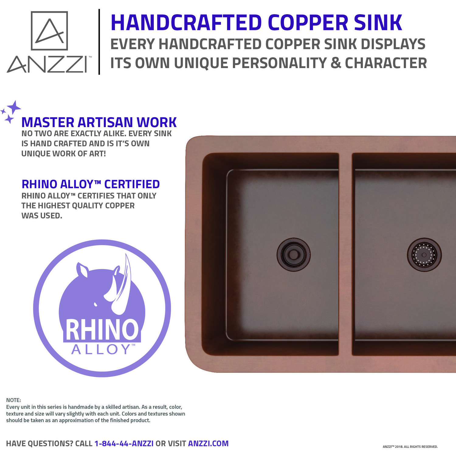 ANZZI presents the latest trending in modern antique Moesia series farmhouse kitchen sink. All ANZZI Moesia kitchen sinks are handcrafted using only Rhino Alloy certified artisan copper. This gorgeous farmhouse sink will transform your kitchen into an expression of yourself on par with the finest of culinary arts. Become a member of the ANZZI family and experience why Perfection is our Tradition.60/40 dual bowl kitchen sinkShips within 24 hours of order processingEvery piece is fully handmade from start to finishCrafted using RHINO ALLOY certified copperLimited lifetime warranty from manufacturer defectsHandmade process will result in subtle variations in color, shape and finishMatching stoppers and basin grids includedOne piece constructionTo speak to a knowledgeable and dedicated ANZZI specialist simply call 1-844-44-ANZZI or visit us on the web at www.ANZZI.com