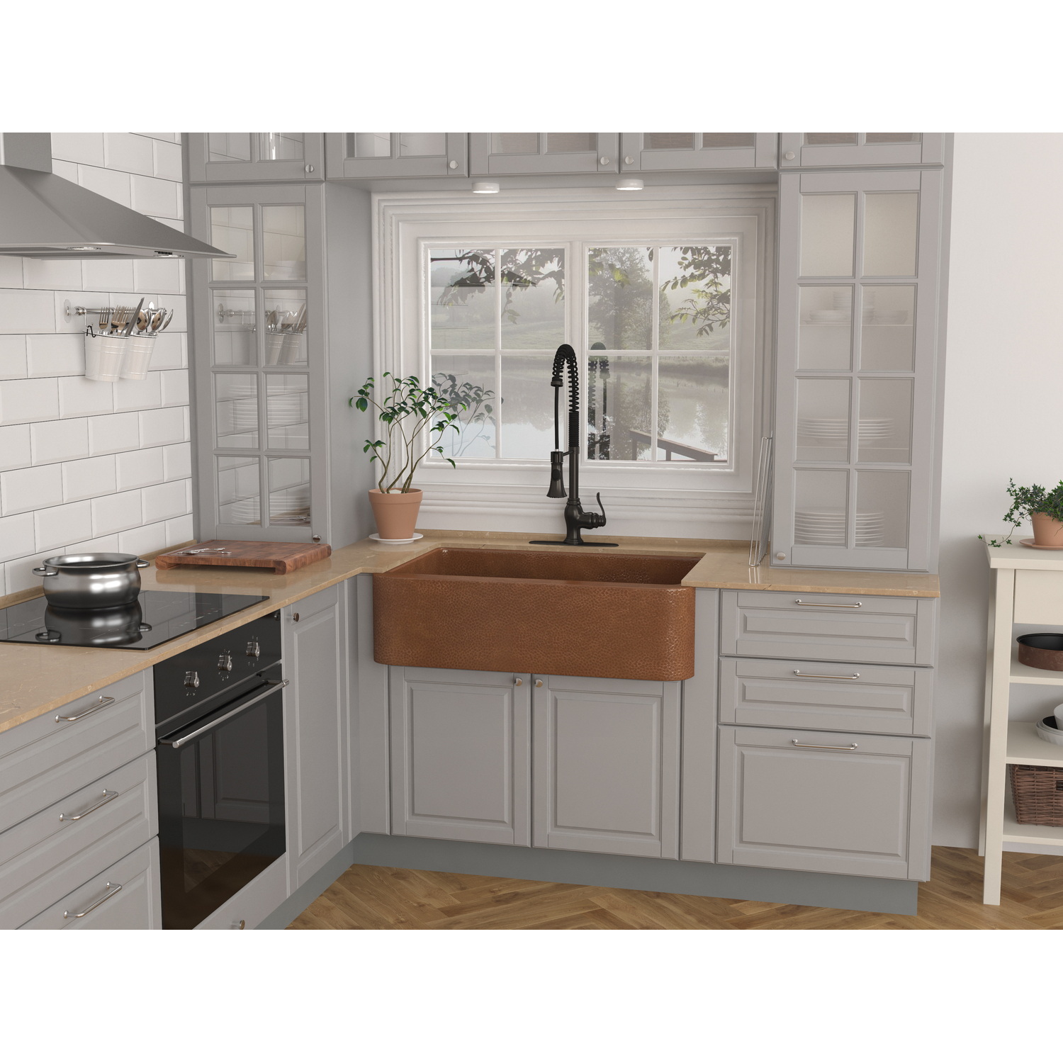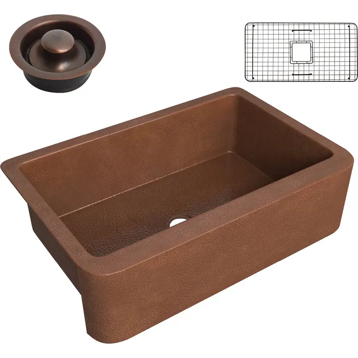 Anzzi Miletus Farmhouse Handmade Copper 33 in. 0-Hole Single Bowl Kitchen Sink in Hammered Antique Copper, 191042047174, SK-013