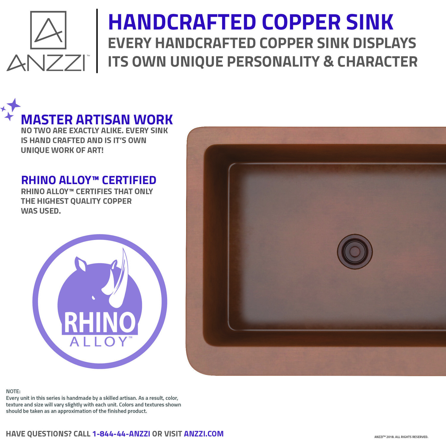 ANZZI presents the latest trending in modern antique Edessa series farmhouse kitchen sink. All ANZZI Edessa kitchen sinks are handcrafted using only Rhino Alloy certified artisan copper. This gorgeous farmhouse sink will transform your kitchen into an expression of yourself on par with the finest of culinary arts. Become a member of the ANZZI family and experience why Perfection is our Tradition.Single bowl kitchen sinkShips within 24 hours of order processingEvery piece is fully handmade from start to finishCrafted using RHINO ALLOY certified copperLimited lifetime warranty from manufacturer defectsHandmade process will result in subtle variations in color, shape and finishMatching stopper and basin grid includedOne piece constructionTo speak to a knowledgeable and dedicated ANZZI specialist simply call 1-844-44-ANZZI or visit us on the web at www.ANZZI.com