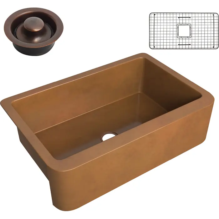 Anzzi Cyprus Farmhouse Handmade Copper 33 in. 0-Hole Single Bowl Kitchen Sink in Polished Antique Copper, 191042047228, SK-018