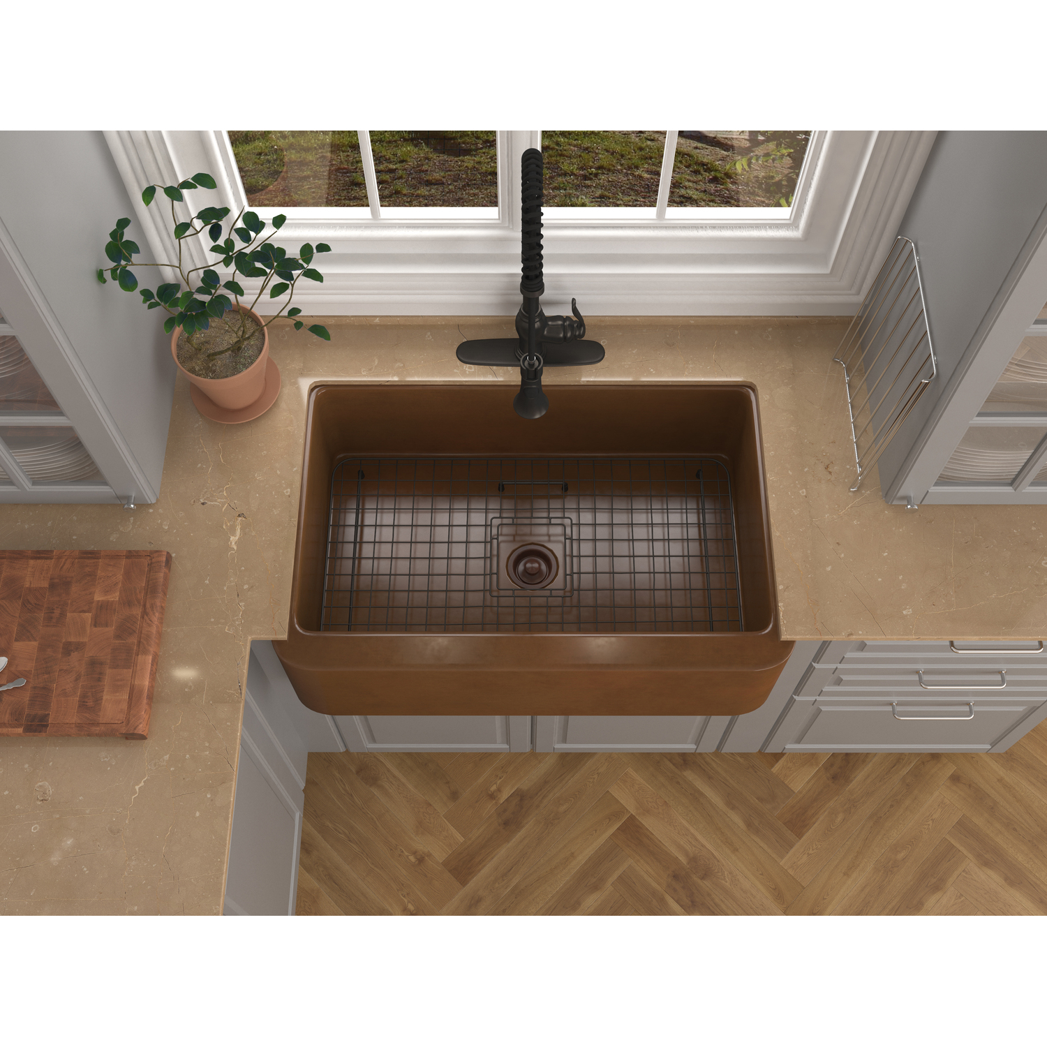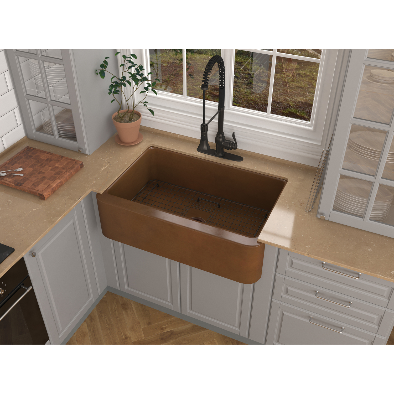 ANZZI presents the latest trending in modern antique Cyprus series farmhouse kitchen sink. All ANZZI Cyprus kitchen sinks are handcrafted using only Rhino Alloy certified artisan copper. This gorgeous farmhouse sink will transform your kitchen into an expression of yourself on par with the finest of culinary arts. Become a member of the ANZZI family and experience why Perfection is our Tradition.Single bowl kitchen sinkShips within 24 hours of order processingEvery piece is fully handmade from start to finishCrafted using RHINO ALLOY certified copperLimited lifetime warranty from manufacturer defectsHandmade process will result in subtle variations in color, shape and finishMatching stopper and basin grid includedOne piece constructionTo speak to a knowledgeable and dedicated ANZZI specialist simply call 1-844-44-ANZZI or visit us on the web at www.ANZZI.com