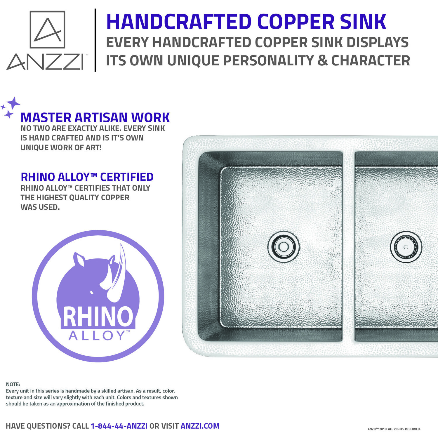 ANZZI presents the latest trending in modern antique Bengal series farmhouse kitchen sink. All ANZZI Bengal kitchen sinks are handcrafted using only Rhino Alloy certified artisan copper. This gorgeous farmhouse sink will transform your kitchen into an expression of yourself on par with the finest of culinary arts. Become a member of the ANZZI family and experience why Perfection is our Tradition.50/50 dual bowl kitchen sinkShips within 24 hours of order processingEvery piece is fully handmade from start to finishCrafted using RHINO ALLOY certified copperLimited lifetime warranty from manufacturer defectsHandmade process will result in subtle variations in color, shape and finishMatching stoppers and basin grids includedOne piece constructionTo speak to a knowledgeable and dedicated ANZZI specialist simply call 1-844-44-ANZZI or visit us on the web at www.ANZZI.com