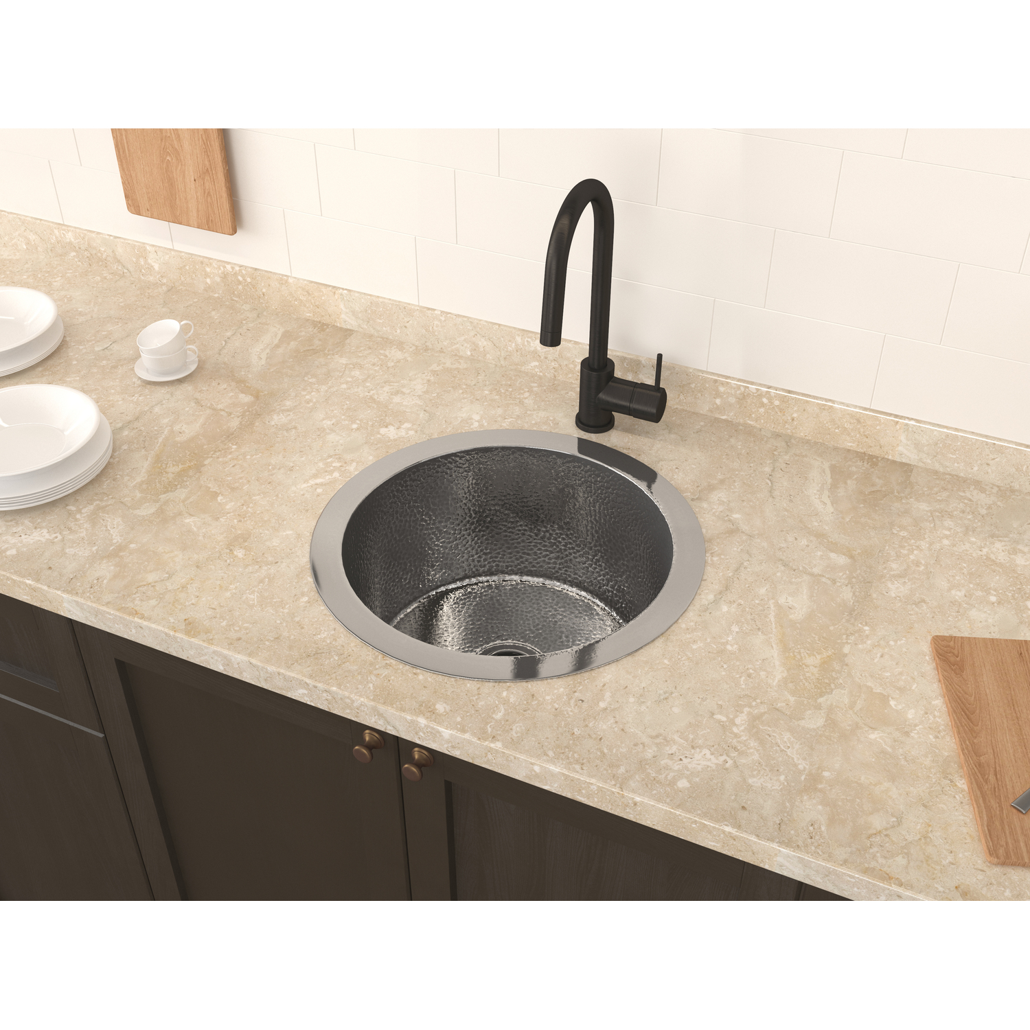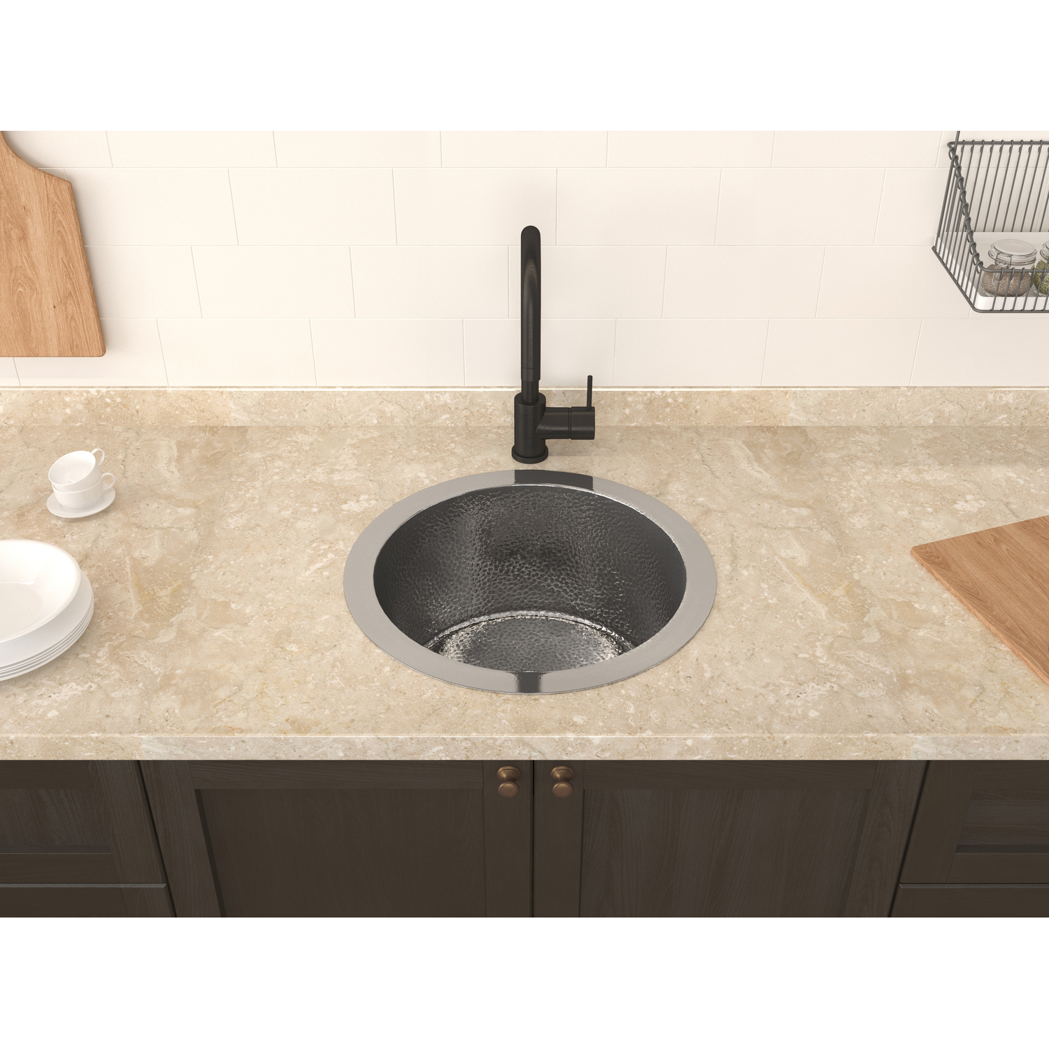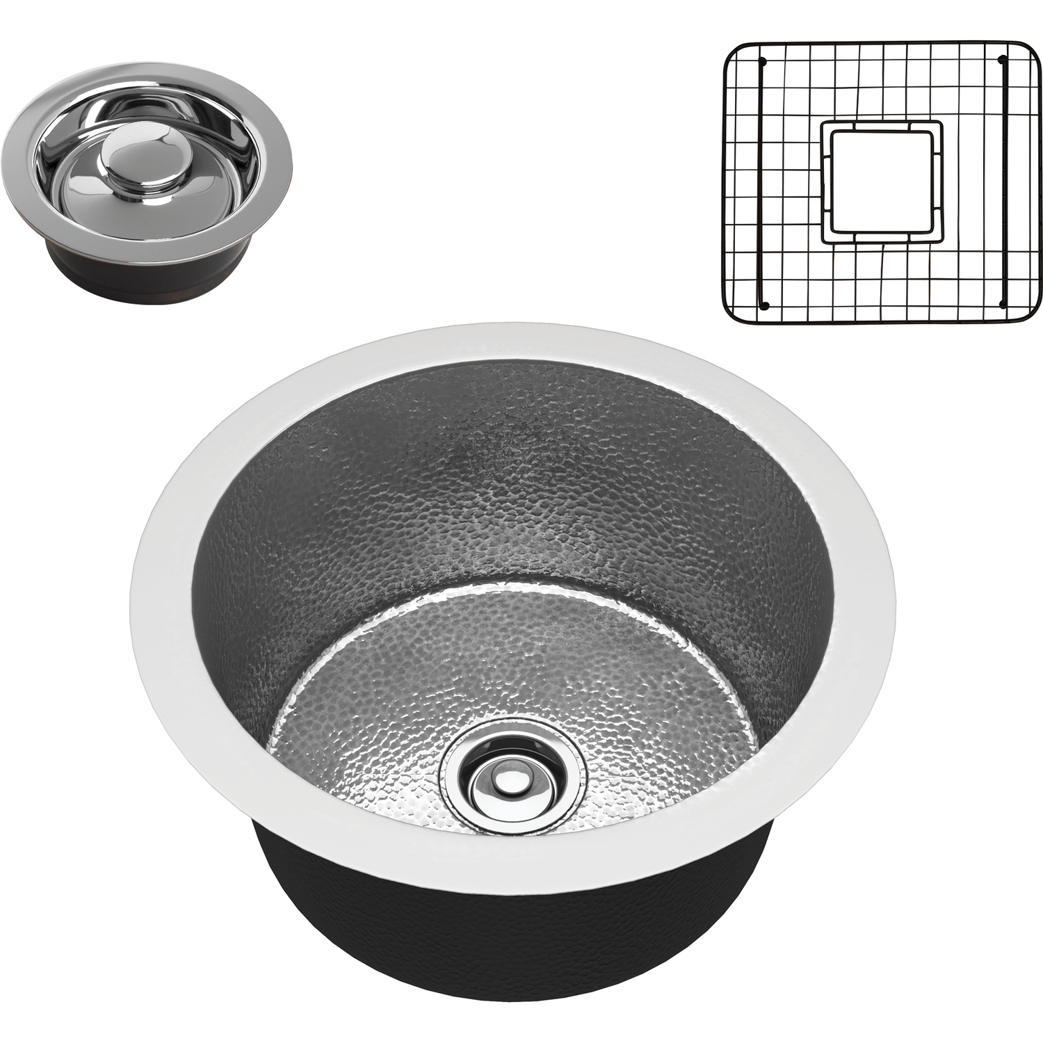 Anzzi Rumelia Drop-in Handmade Copper 17 in. 0-Hole Single Bowl Kitchen Sink in Hammered Nickel, 191042047266, SK-024