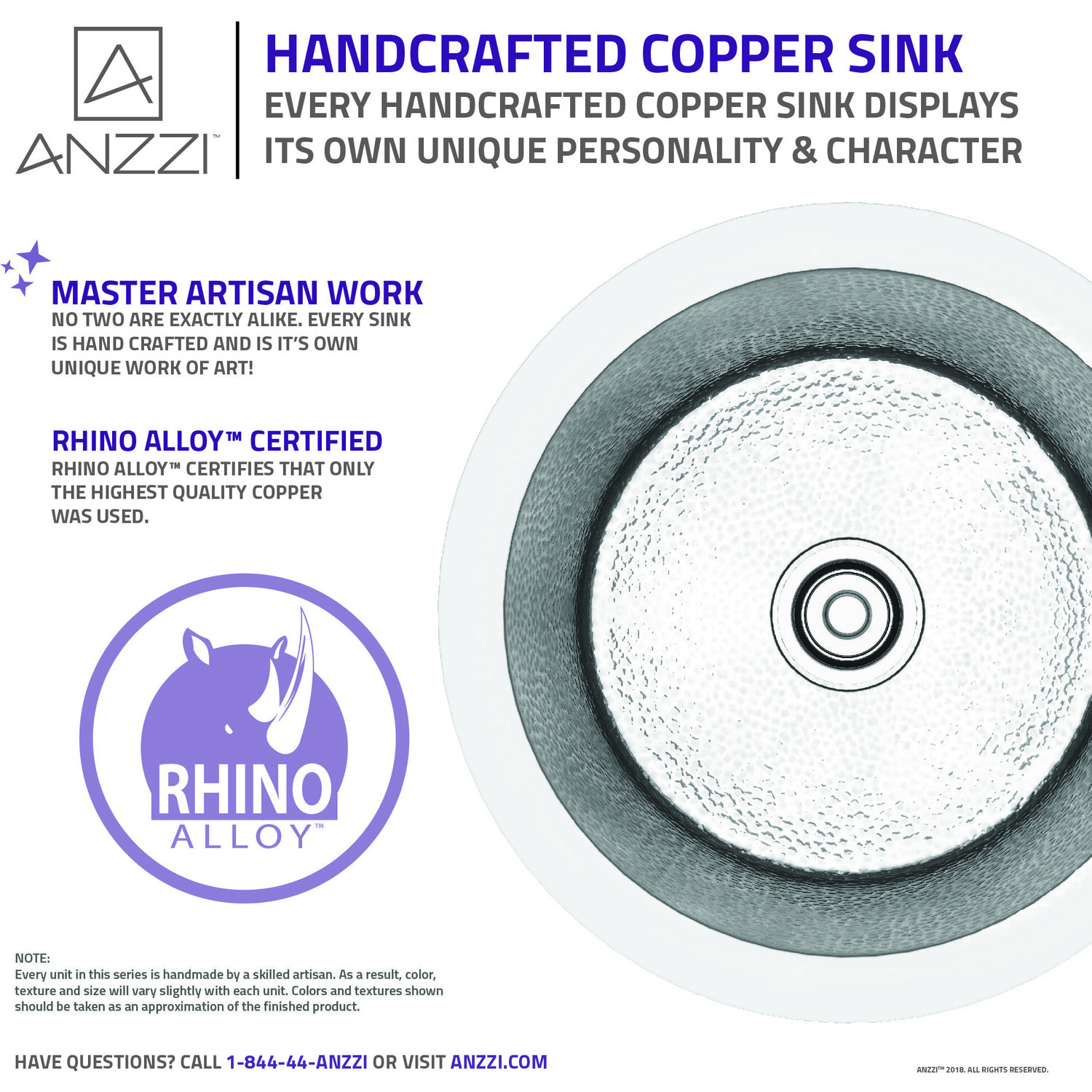 ANZZI presents the latest trending in modern antique Rumelia series drop-in kitchen sink. All ANZZI Rumelia kitchen sinks are handcrafted using only Rhino Alloy certified artisan copper. This drop-in sink is perfect center piece for your kitchen. Become a member of the ANZZI family and experience why Perfection is our Tradition.Single bowl kitchen sinkShips within 24 hours of order processingEvery piece is fully handmade from start to finishCrafted using RHINO ALLOY certified copperLimited lifetime warranty from manufacturer defectsHandmade process will result in subtle variations in color, shape and finishMatching stopper and basin grid includedOne piece constructionTo speak to a knowledgeable and dedicated ANZZI specialist simply call 1-844-44-ANZZI or visit us on the web at www.ANZZI.com