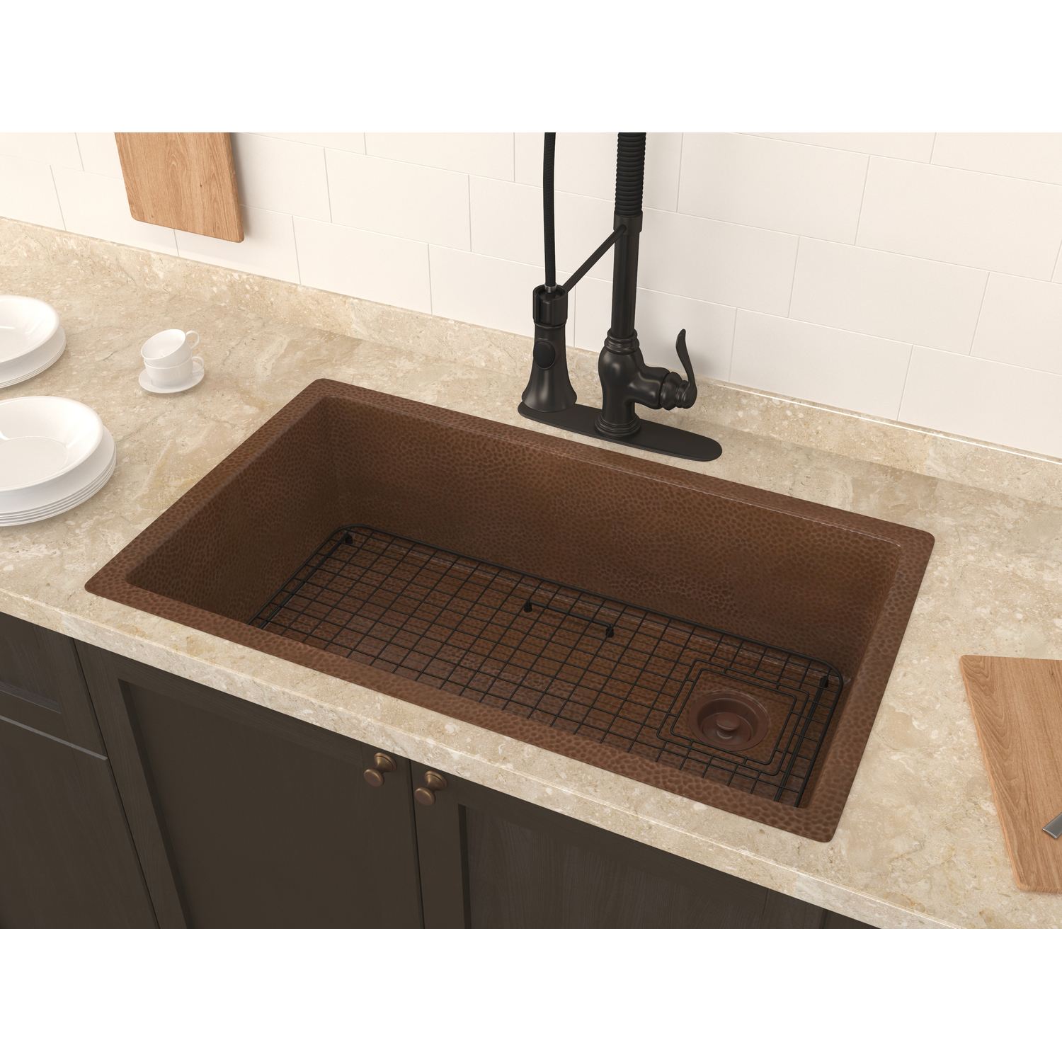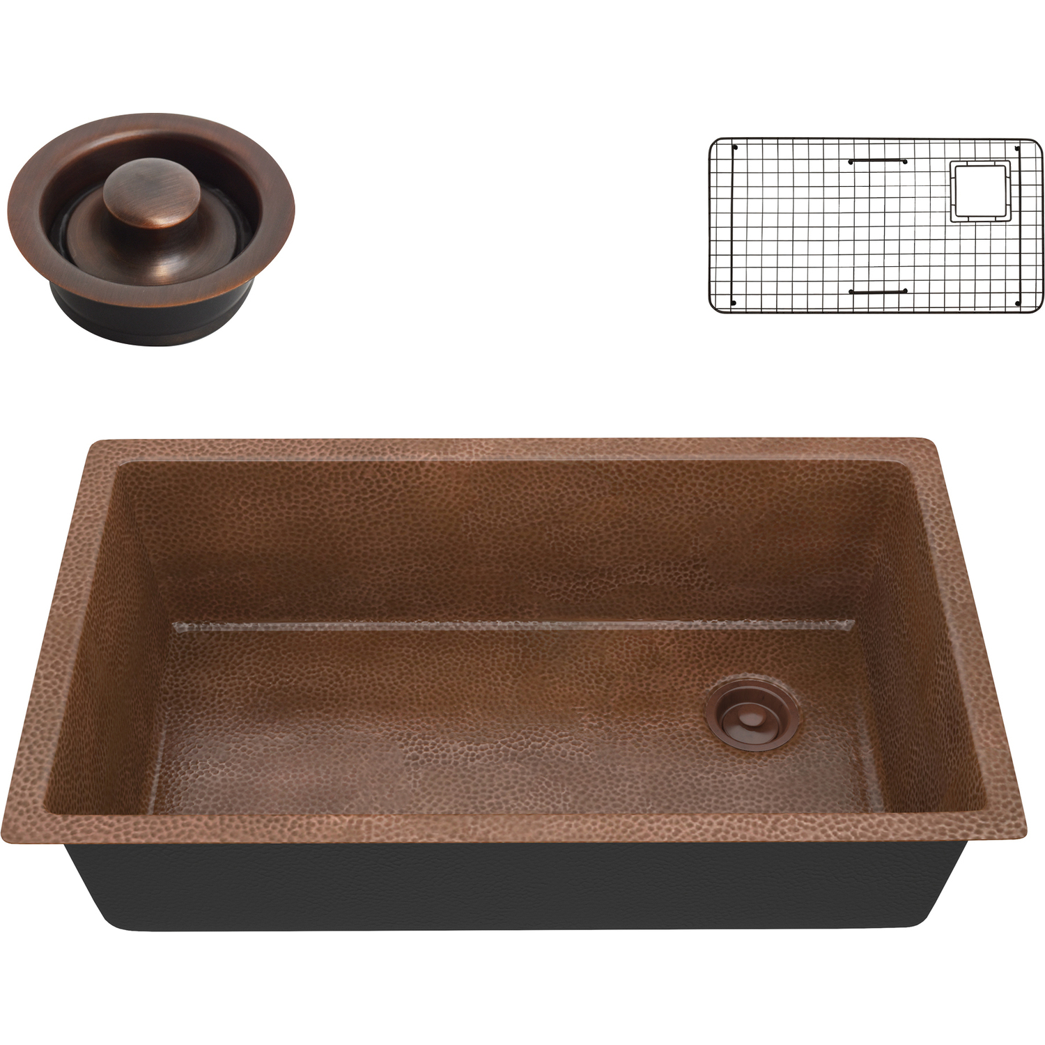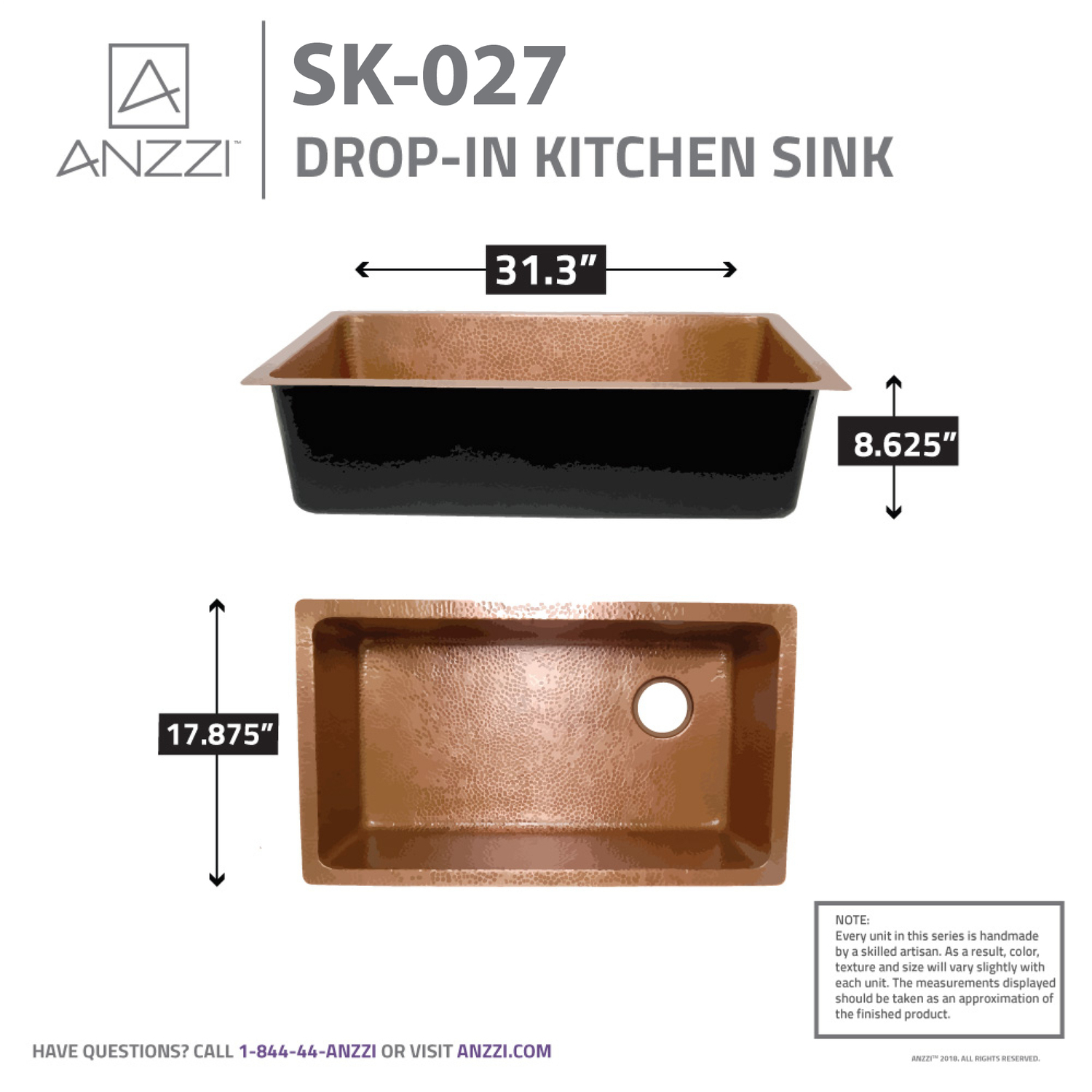 Anzzi Byzantine Drop-in Handmade Copper 31 in. 0-Hole Single Bowl Kitchen Sink in Hammered Antique Copper, 191042047280, SK-027