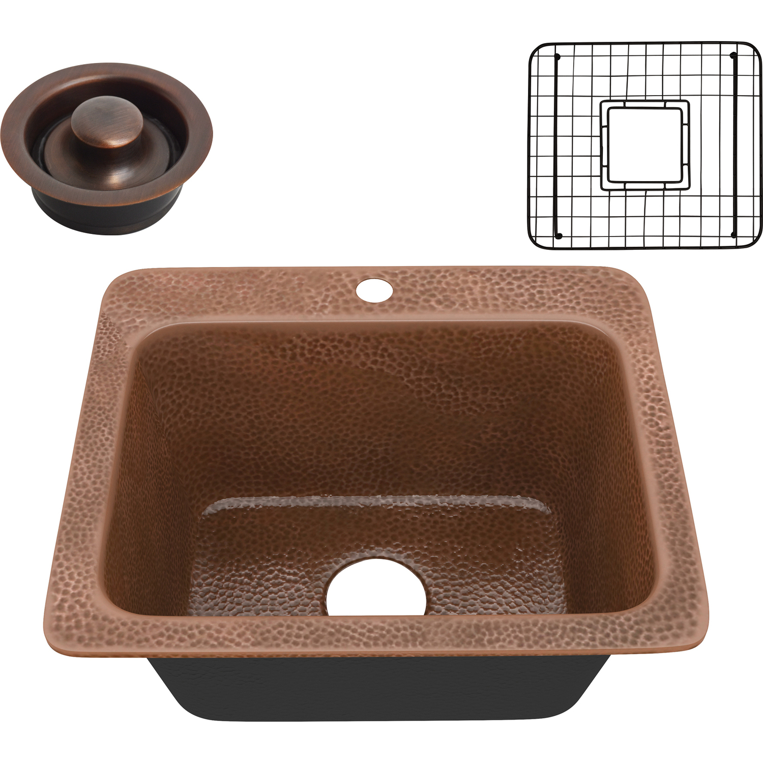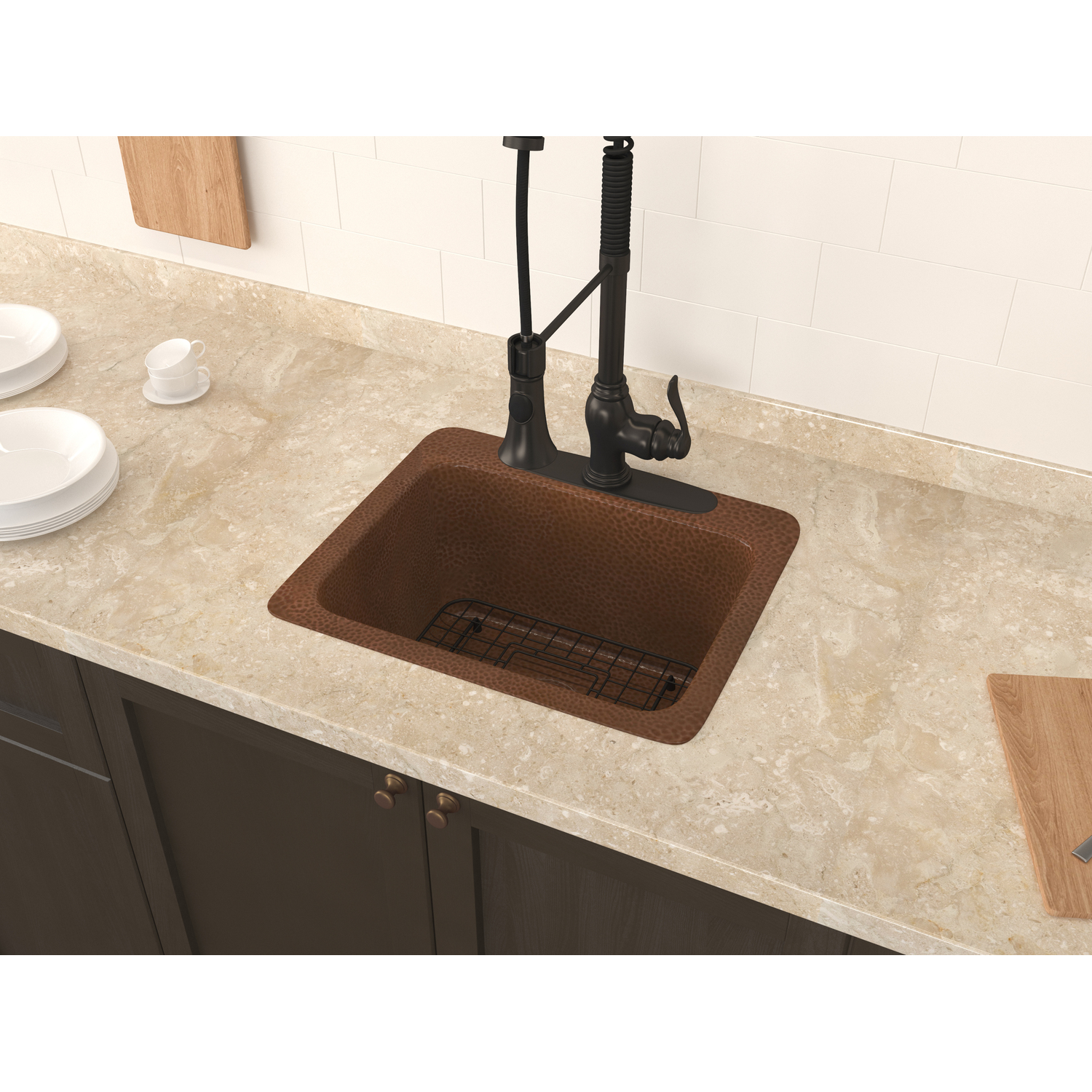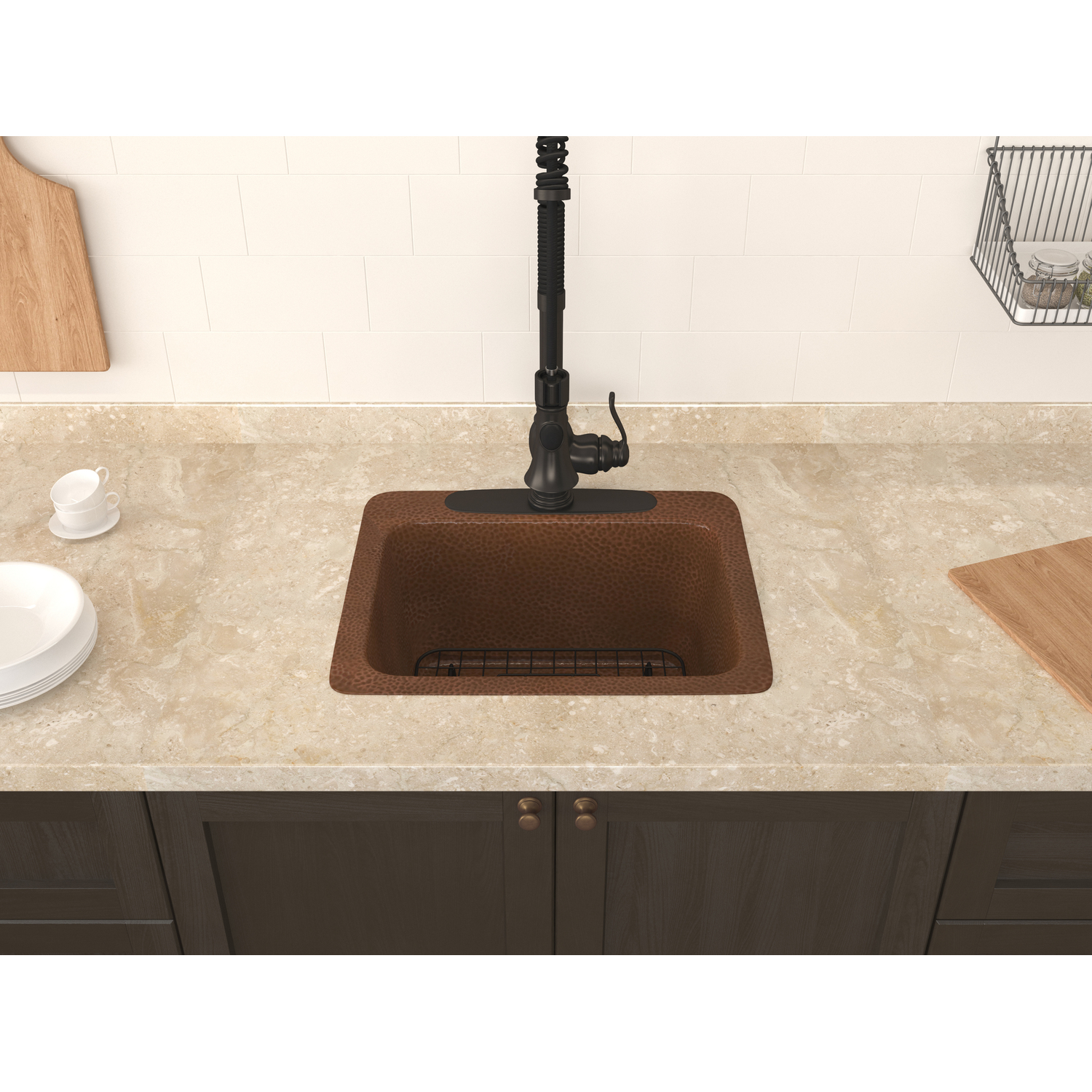 Anzzi Manisa Drop-in Handmade Copper 18 in. 1-Hole Single Bowl Kitchen Sink in Hammered Antique Copper, 191042047310, SK-030