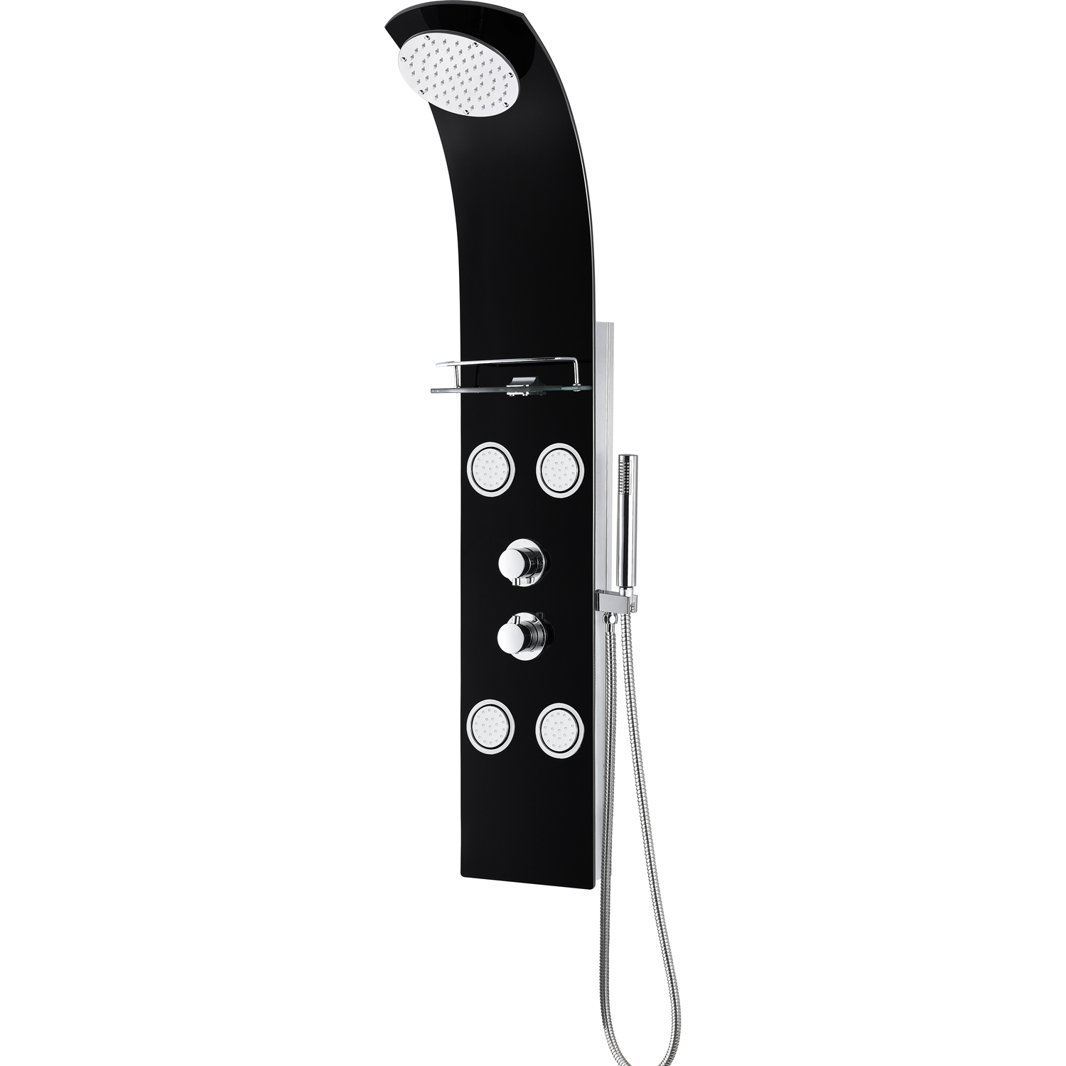 ANZZI is introducing the next level in personal jet stream shower technology with our latest series of elegant and reliably performing shower panels. The ANZZI full tower Llano shower panel features a modern laser cut tempered Deco-Glass frame equipped with 4 Acu-Stream body jets providing a powerful water stream to massage the body. ANZZI shower panels feature true flow Heavy Rain performance hanging shower heads and Euro-Grip hand held sprayer. All features are controlled through 2 chrome finish thermostatic and diverter controls.Your order will include one (1) Llano Full Body Shower Panel with Deco-Glass Shampoo Shelf, one (1) Heavy Rain shower head, four (4) Acu-Stream directional body jets, one (1) Euro-Grip free range hand sprayer, one (1) owner's manualfour (4) Acu-Stream directional vector massage body jetsTwo (2) Shower control knobsSwiveling crested shower head with Heavy Rain water pressure technologyFree reign Euro-Grip handheld sprayer with 60" reachCrafted RHINO ALLOY certified tempered Deco-Glass body, solid brass valve interior, high grade ABS componentsWater saving 1.8gpm flow rate with 2.5gpm when reducer is removedReach Level Deco-Glass shampoo shelfFlexible reinforced stainless steel supply hoses with standard .5" connectionShips from warehouse within 24 hours of order processingLimited Lifetime WarrantyTo speak to a knowledgeable and dedicated ANZZI specialist simply call 1-844-44-ANZZI or visit us on the web at www.ANZZI.com