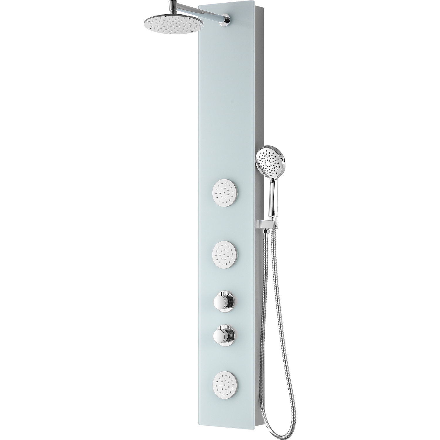 ANZZI is introducing the next level in personal jet stream shower technology with our latest series of elegant and reliably performing shower panels. The ANZZI full tower Mare shower panel features a modern laser cut tempered Deco-Glass frame equipped with 3 Acu-Stream body jets providing a powerful water stream to massage the body. ANZZI shower panels feature true flow Heavy Rain performance hanging shower heads and Euro-Grip hand held sprayer. All features are controlled through 2 chrome finish thermostatic and diverter controls.Your order will include one (1) Mare Full Body Shower Panel, one (1) Heavy Rain shower head, three (3) Acu-Stream body jet sets, one (1) Euro-Grip free range hand sprayer with dual massage and full settings, one (1) owner's manualthree (3) Acu-Stream vector massage body jet setsTwo (2) Shower control knobsSwiveling crested shower head with Heavy Rain water pressure technologyFree reign Euro-Grip handheld sprayer with dual Focused and Full stream actionCrafted RHINO ALLOY certified tempered Deco-Glass body, solid brass valve interior, high grade ABS componentsWater diverter control for fully customizable shower experienceFlexible reinforced stainless steel supply hoses with standard .5" connectionShips from warehouse within 24 hours of order processingLimited Lifetime WarrantyTo speak to a knowledgeable and dedicated ANZZI specialist simply call 1-844-44-ANZZI or visit us on the web at www.ANZZI.com