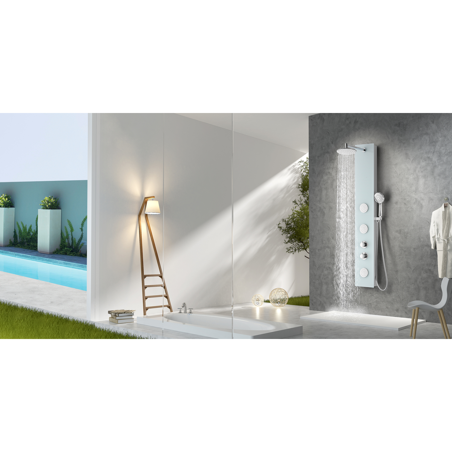 Anzzi Mare Series 60 in. Full Body Shower Panel System with Heavy Rain Shower and Spray Wand in White, 191042003699, SP-AZ050