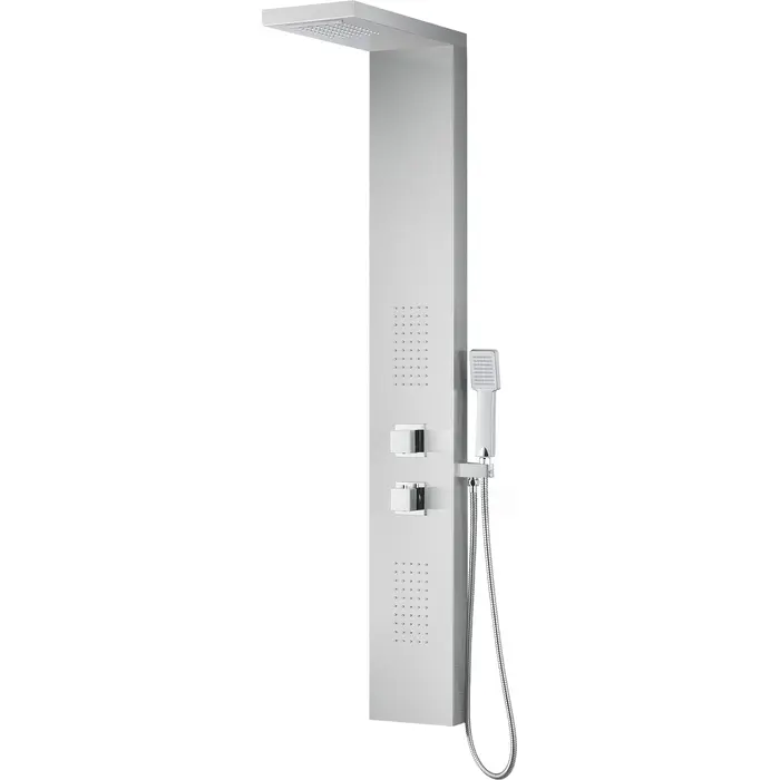 ANZZI is introducing the next level in personal jet stream shower technology with our latest series of elegant and reliably performing shower panels. The ANZZI full tower Govenor shower panel features a modern laser cut brushed 304 stainless steel frame equipped with 2 Acu-Stream body jets providing a powerful water stream to massage the body. ANZZI shower panels feature true flow Heavy Rain performance hanging shower heads and Euro-Grip hand held sprayer. All features are controlled through 2 chrome finish thermostatic and diverter controls.Your order will include one (1) Govenor Full Body Shower Panel, one (1) Heavy Rain shower head with cascading waterfall, two (2) Acu-Stream body jet sets, one (1) Euro-Grip free range hand sprayer, one (1) owner's manualTwo (2) Acu-Stream vector massage body jet setsTwo (2) Shower control knobsFixed crested shower head with Heavy Rain water pressure technologyFree reign Euro-Grip handheld sprayer with 60" reachCrafted RHINO ALLOY certified 304 stainless steel body, solid brass valve interior, high grade ABS componentsWater diverter control for fully customizable shower experienceFlexible reinforced stainless steel supply hoses with standard .5" connectionShips from warehouse within 24 hours of order processingLimited Lifetime WarrantyTo speak to a knowledgeable and dedicated ANZZI specialist simply call 1-844-44-ANZZI or visit us on the web at www.ANZZI.com