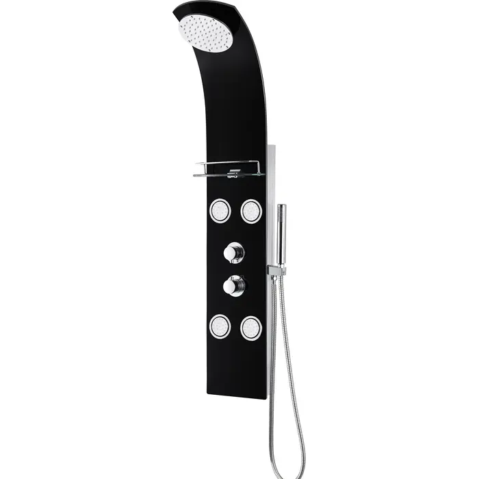 ANZZI is introducing the next level in personal jet stream shower technology with our latest series of elegant and reliably performing shower panels. The ANZZI full tower Colossal shower panel features a modern laser cut tempered Deco-Glass frame equipped with 4 Acu-Stream body jets providing a powerful water stream to massage the body. ANZZI shower panels feature true flow Heavy Rain performance hanging shower heads and Euro-Grip hand held sprayer. All features are controlled through 2 chrome finish thermostatic and diverter controls.Your order will include one (1) Colossal Full Body Shower Panel with Deco-Glass Shampoo Shelf, one (1) Heavy Rain shower head, four (4) Acu-Stream directional body jets, one (1) Euro-Grip free range hand sprayer, one (1) owner's manualFour (4) Acu-Stream directional vector massage body jetsTwo (2) Shower control knobsSwiveling crested shower head with Heavy Rain water pressure technologyFree reign Euro-Grip handheld sprayer with 60" reachCrafted RHINO ALLOY certified tempered Deco-Glass body, solid brass valve interior, high grade ABS componentsWater saving 1.8gpm flow rate with 2.5gpm when reducer is removedReach Level Deco-Glass shampoo shelfFlexible reinforced stainless steel supply hoses with standard .5" connectionShips from warehouse within 24 hours of order processingLimited Lifetime WarrantyTo speak to a knowledgeable and dedicated ANZZI specialist simply call 1-844-44-ANZZI or visit us on the web at www.ANZZI.com