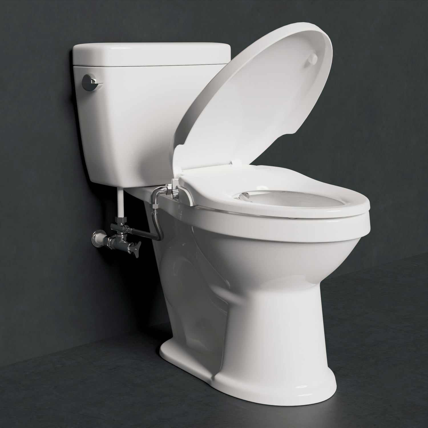 There’s nothing like a soft, soothing spray of water to leave you feeling completely clean and refreshed. Our bidet attachment mounts to your toilet with minimal fuss and easily connects to your existing water line — it’s simple enough that any DIYer can do it! Dual nozzles direct a targeted stream of water right where you want it, giving you a super-effective cleaning without the irritation and waste of toilet paper. You control the strength and direction of the spray with the easy-to-use, easy-to-reach control handle mounted right at your side. This luxurious bathroom upgrade is powered by water pressure alone — no batteries or electricity needed!