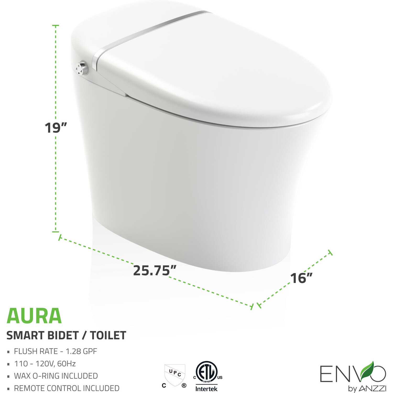Anzzi ENVO Aura Smart Toilet Bidet with Remote & Auto Flush, 191042075474, TL-STSF851WH-FBA