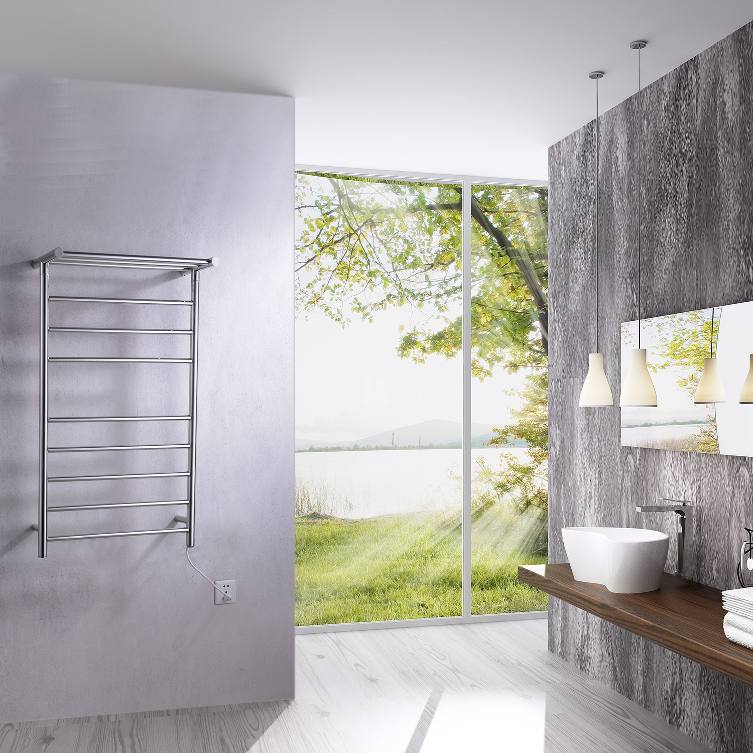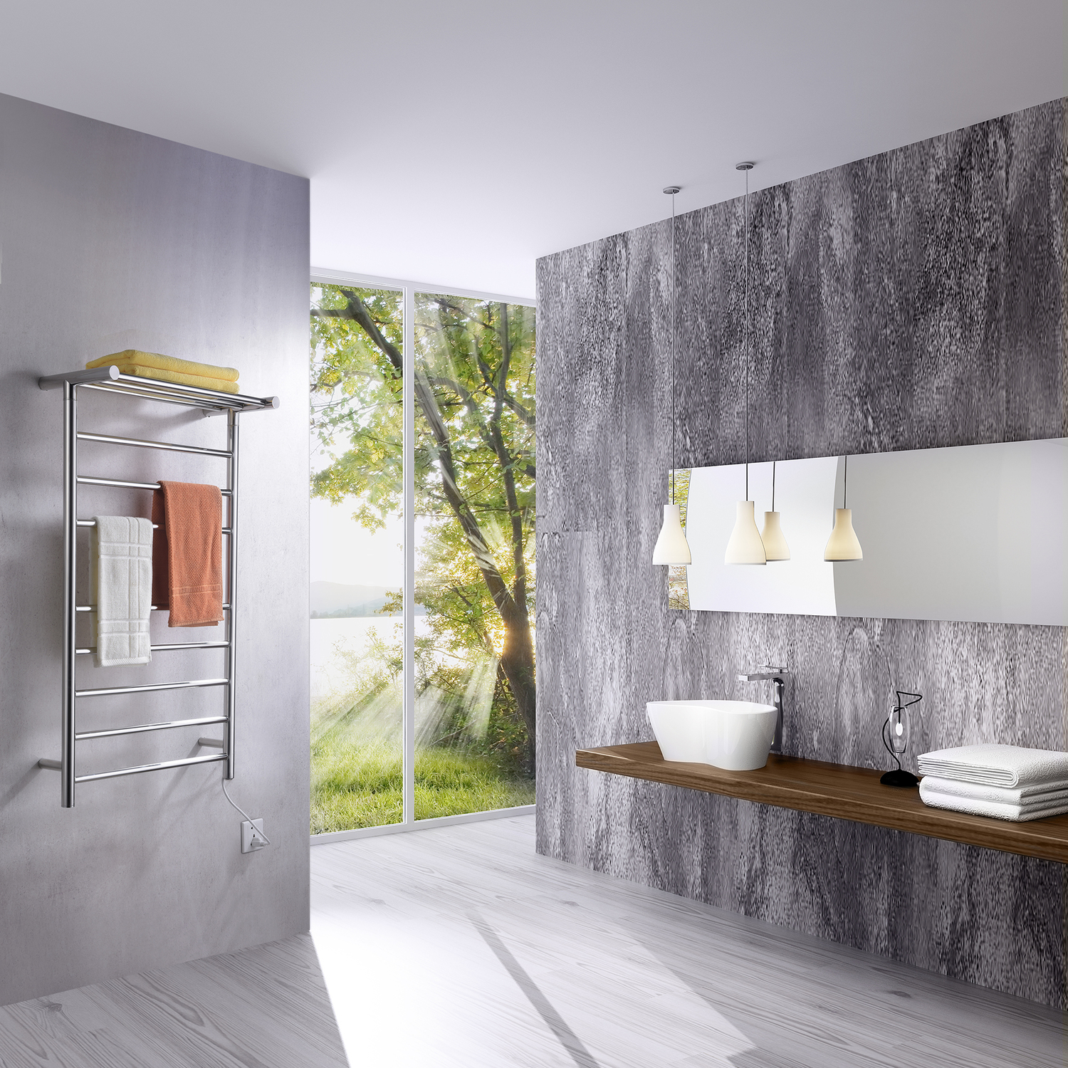 Just imagine stepping out of the bath or shower and wrapping yourself in a toasty towel, then putting on a warm robe. Our ANZZI Eve wall mounted electric towel warmer rack can make that dream a reality. The ingenious design combines 8 bars in a 3 & 5 grouping with a bonus top shelf. You’ll be able to warm thick bath towels and bathrobes, as well as washcloths and hand towels, in just 20 minutes. Stylishly crafted from Rhino Alloy-certified stainless steel finished in striking Polished Chrome.Warms up in just 20 minutesMade from Rhino Alloy-certified stainless steelBeautiful Polished Chrome finishEasy-to-use on/off switchSimple wall mount installation (minimal assembly required)No wiring required — just plug in to existing outletDimensions: 39.0 in. H x 23.62 in. W x L x 9.53 in. DUL certified to meet all national safety standards93 watts of power, 110 voltsGet it fast — ships from warehouse within 24 hours of order processingProtected by our Lifetime WarrantyTo speak to a knowledgeable ANZZI specialist, simply call 1-844-44-ANZZI or visit us on the web at www.ANZZI.com
