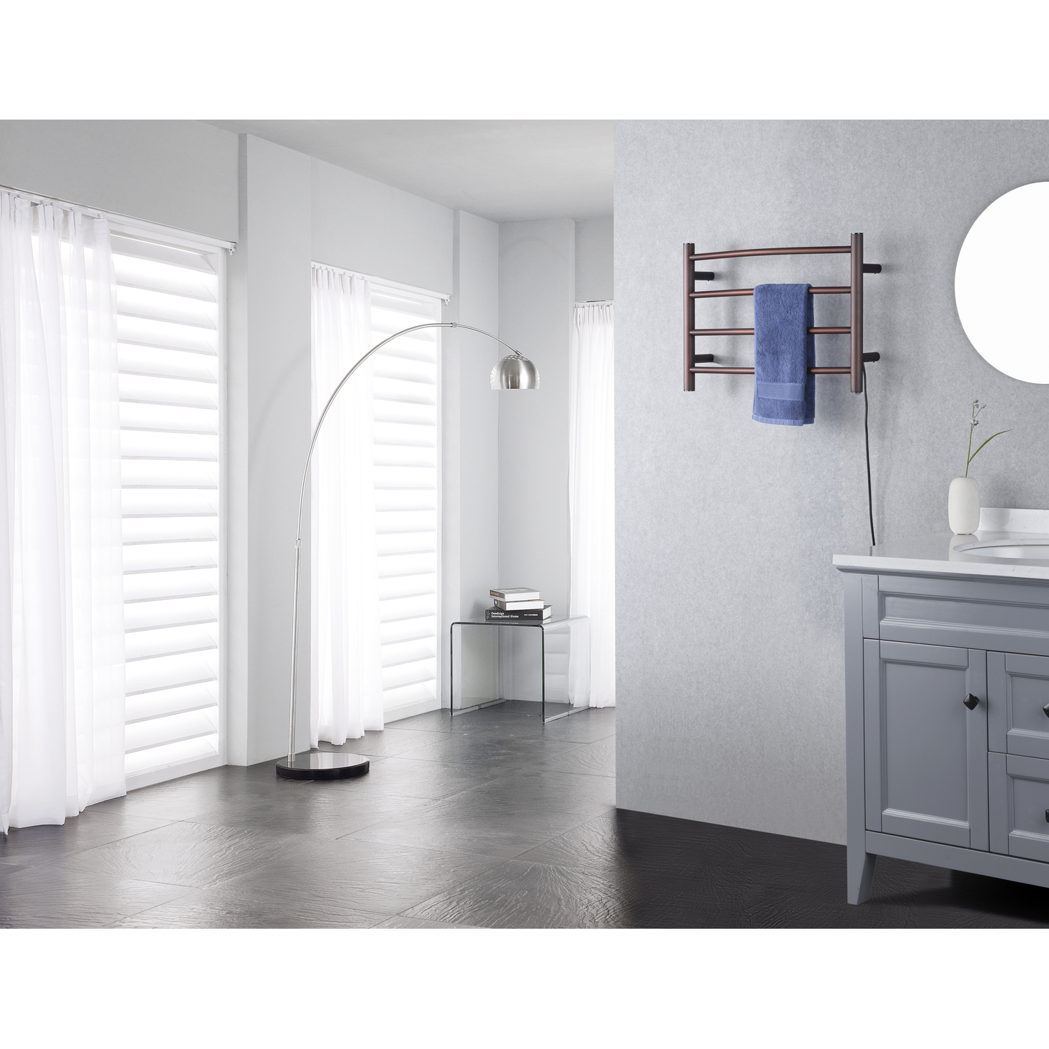 - One (1) Piece 4-Bar Modern Design Towel Warmer in Oil Rubbed Bronze