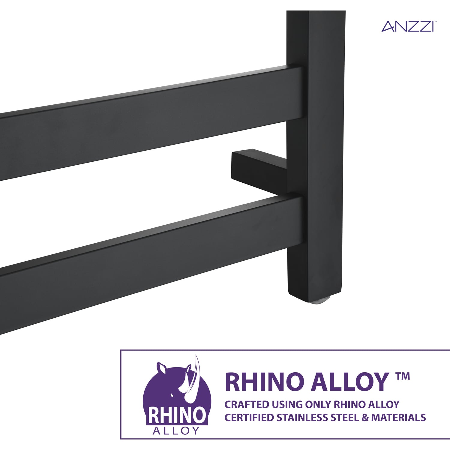 Be embraced by a warm towel after every bath with our ANZZI Note 6 evenly spaced bar stainless steel wall mounted electric towel warmer rack in matte black. With a modern and minimalist design our towel warmer is safe, reliable and energy efficient with a quick 20 minute warm-up time. No need to worry about rust as our towel warmer is finely crafted from RHINO ALLOY certified rust resistant stainless steel.One (1) Piece 6 Evenly Spaced Bar Modern Design Towel Warmer in Matte BlackWarm-Up Time: 20 MinsWall mounted installation (minimal assembly required)Matte Black FinishPlug-in to outlet with on/off switchDimensions: 23.62 in. L x 4.13 in. W x 25.2 in. HUL Certified90 watts of power ; 110vRHINO ALLOY certified Stainless SteelShips from factory within 24 hours once order is processedLifetime WarrantyTo speak to a knowledgeable and dedicated ANZZI specialist simply call 1-844-44-ANZZI or visit us on the web at www.ANZZI.com