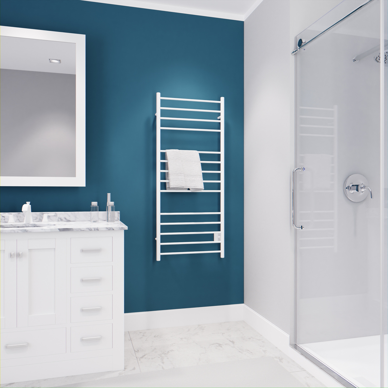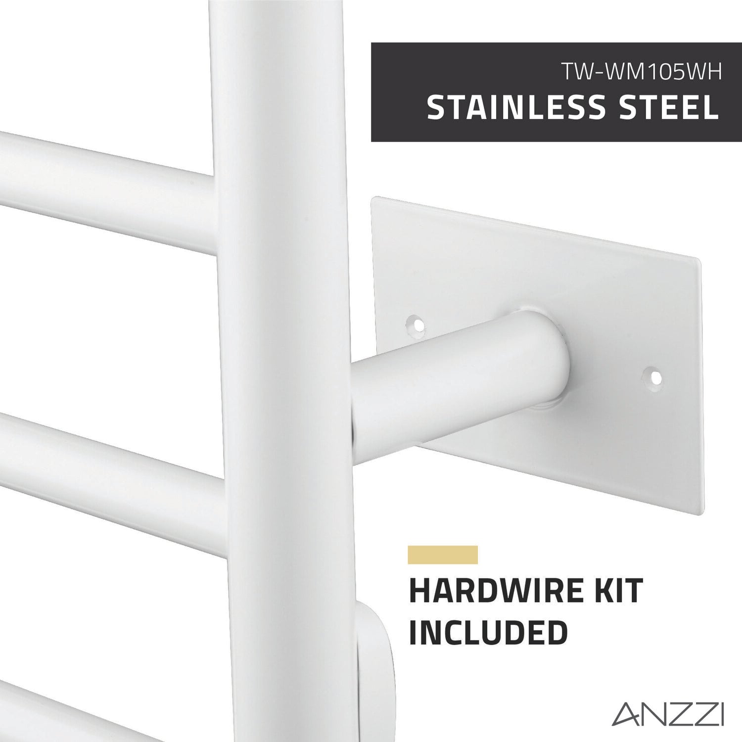 ANZZI Elgon 14-Bar Carbon Steel Wall Mounted Electric Towel Warmer Rack in White, 191042056077, TW-WM105WH