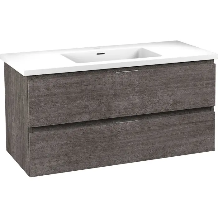 This smart-looking vanity asserts its individuality with a clever combination of style and function. The two spacious soft-closing drawers are perfect for storing and organizing personal care items. It’s crafted from composite wood with a beautiful textured design that creates a premium look. The vanity is topped with a solid surface man-made stone counter and sink finished in a gorgeous Glossy White.