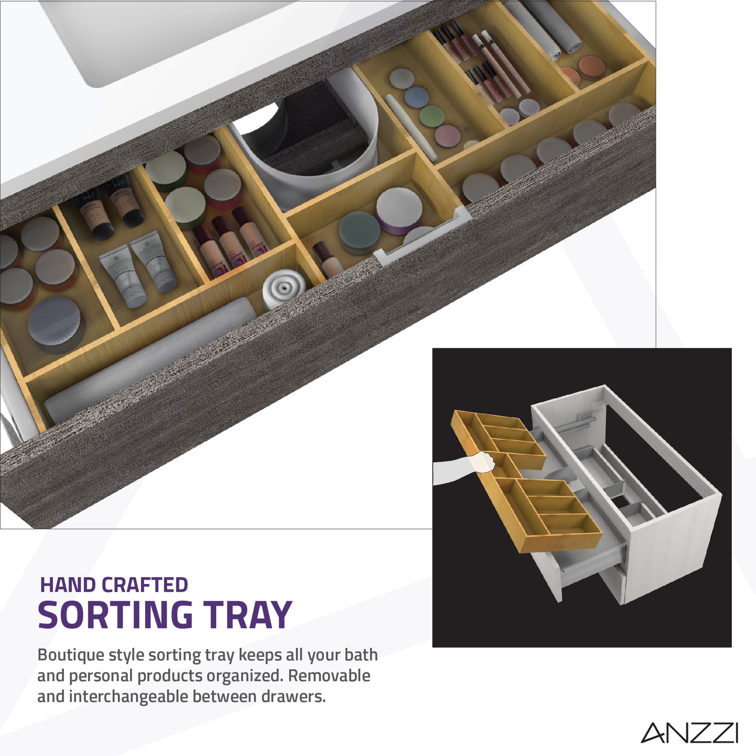 - Vanity includes a removable insert tray that’s ideal for organizing and storing your personal care products