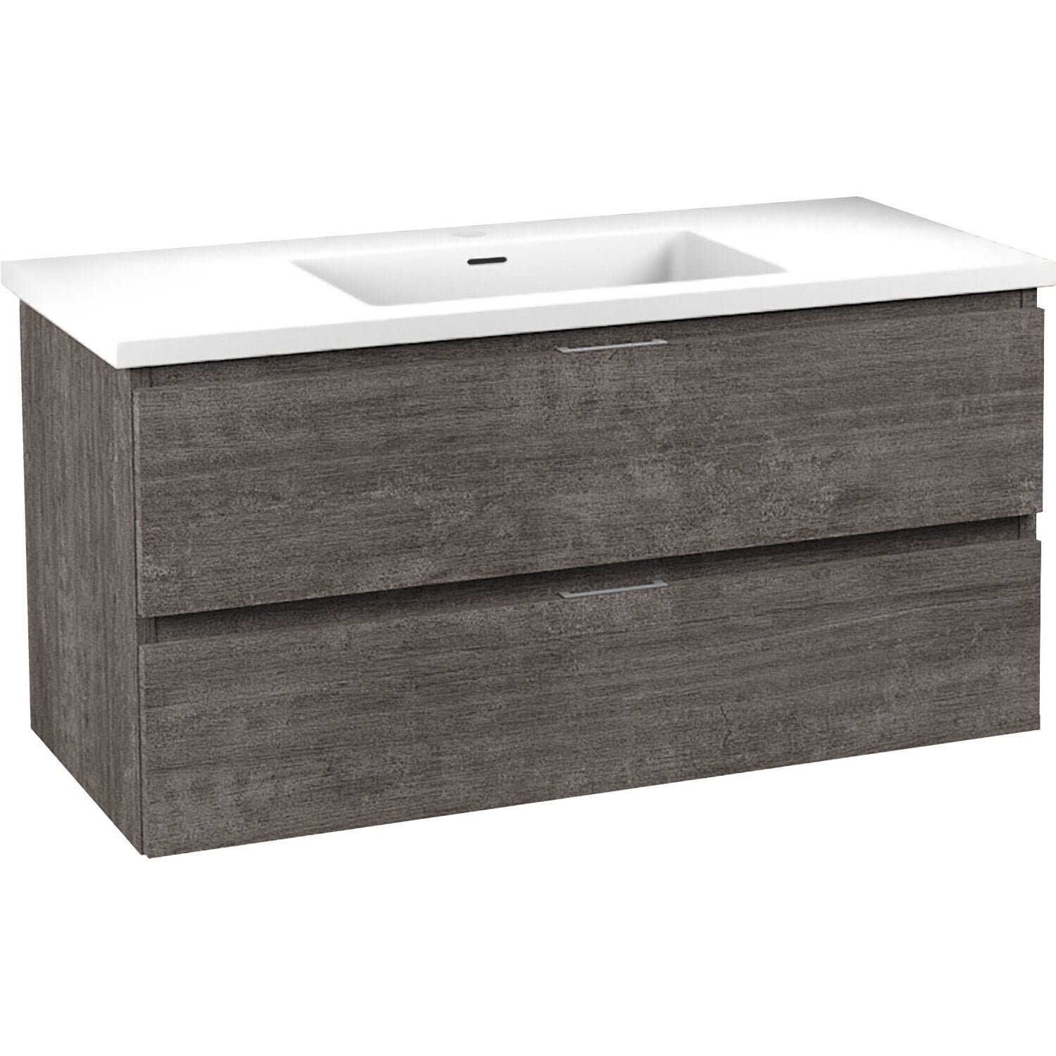 Set includes vanity with top and sink, and mounting hardwareOverall dimensions: 39 in. W x 20 in. H x 18 in. DBasin dimensions: 17.7 in. W x 11.2 in. L x 3.5 in. DSink and countertop are crafted from beautiful and durable solid surface man-made stone that’s finished in Glossy WhiteSoft closing drawers are nearly impossible to slam — give them a push and they catch and gently closeVanity includes a removable insert tray that’s ideal for organizing and storing your personal care productsWall-mounted design is a stylish and modern alternative to traditional floor-mounted vanitiesComposite wood construction has a beautifully textured finish for a unique, premium lookSturdy aluminum chassis won’t rustAll hardware is Rhino Alloy-certified to guarantee the best quality and long-lasting durabilitySink features a built-in overflow and pre-drilled faucet holeProtected by our Limited Lifetime WarrantyGet it fast — ships from warehouse within 24 hours of order processingSafe and convenient curbside delivery