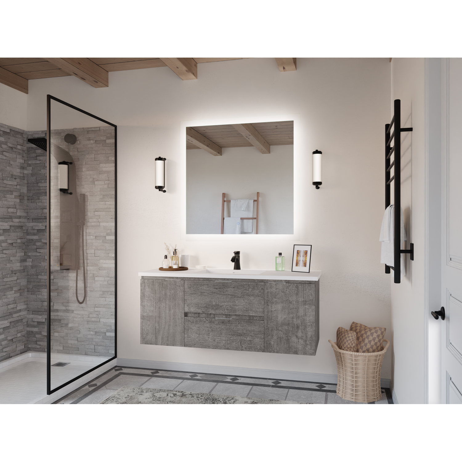 - Wall-mounted design is a stylish and modern alternative to traditional floor-mounted vanities