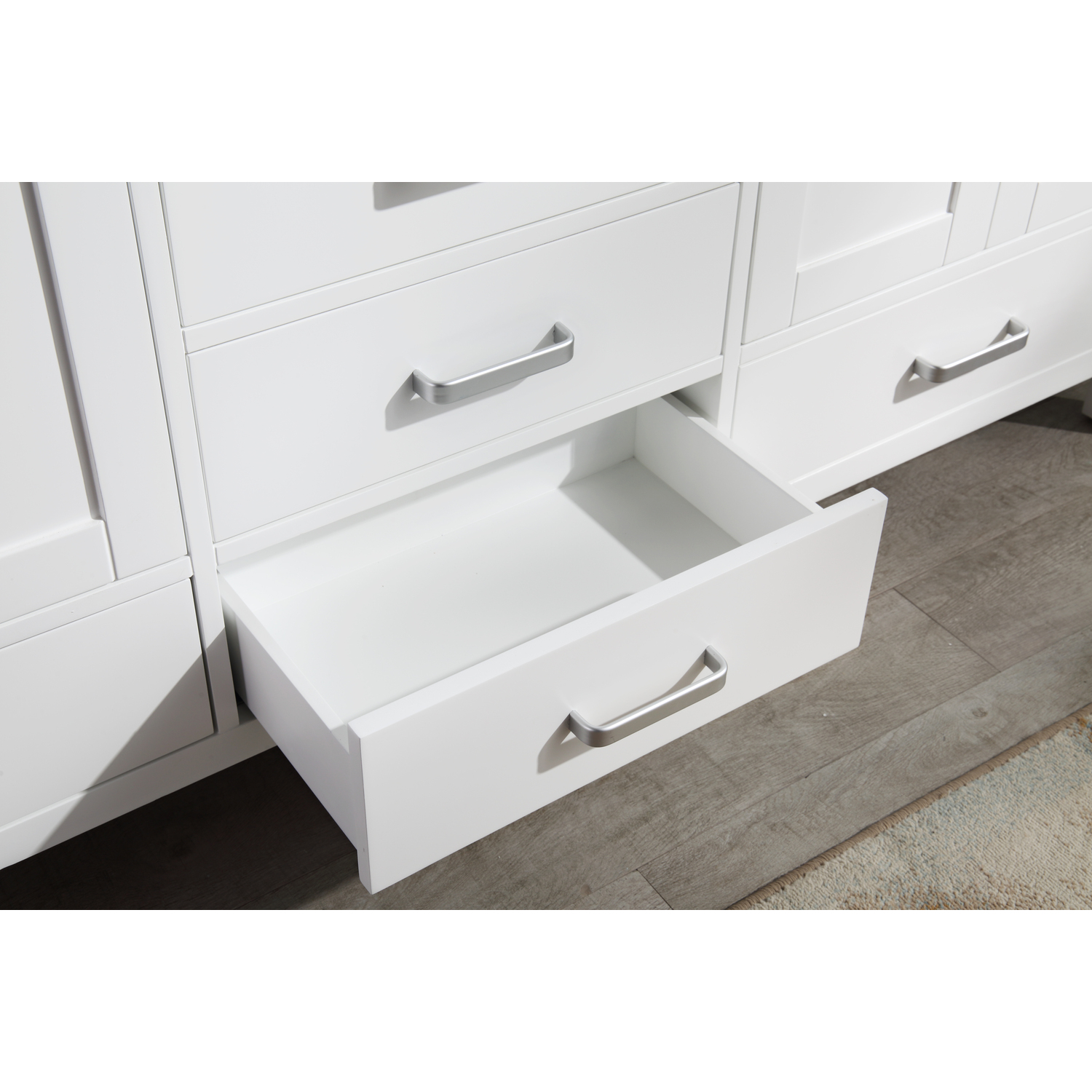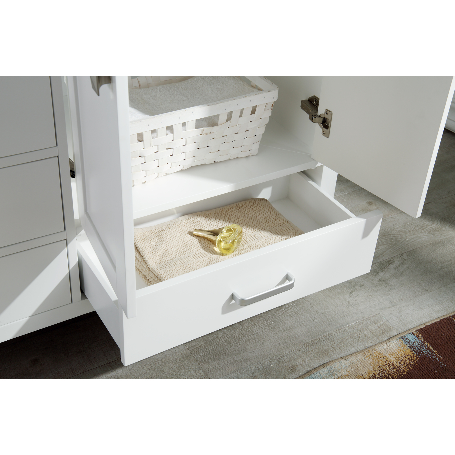 - Handmade wooden cabinet body a rich white finish