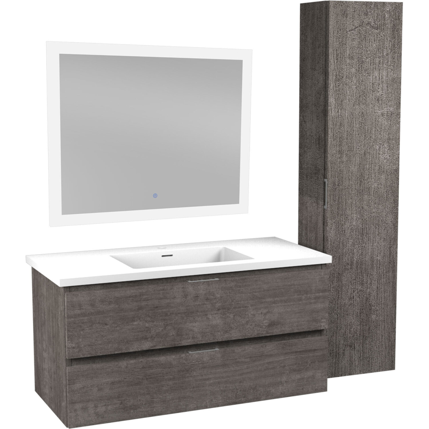 - Set includes vanity with top and sink, side cabinet, LED mirror and mounting hardware