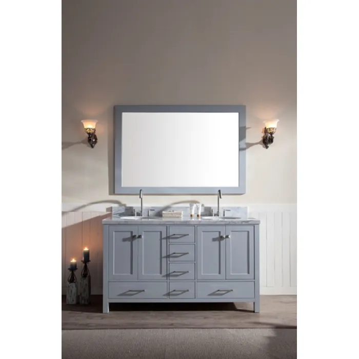 Ariel Cambridge 61" Double Sink Bathroom Vanity Set In Grey