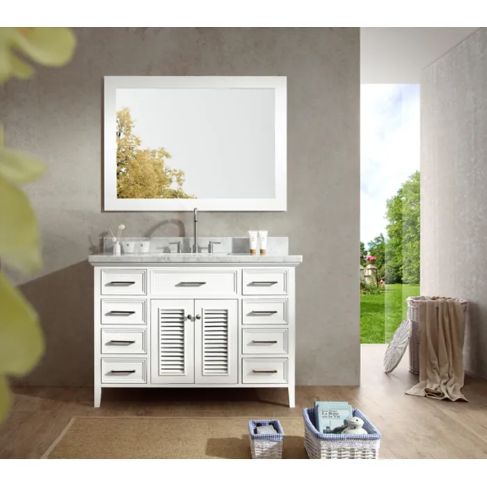 Add a touch of elegance to your traditional bathroom with a beautiful Kensington bathroom vanity from Ariel Bath. The Kensington series features white solid wood cabinets and white carrara marble countertops. These vanities will add style and storage to your bathroom décor.