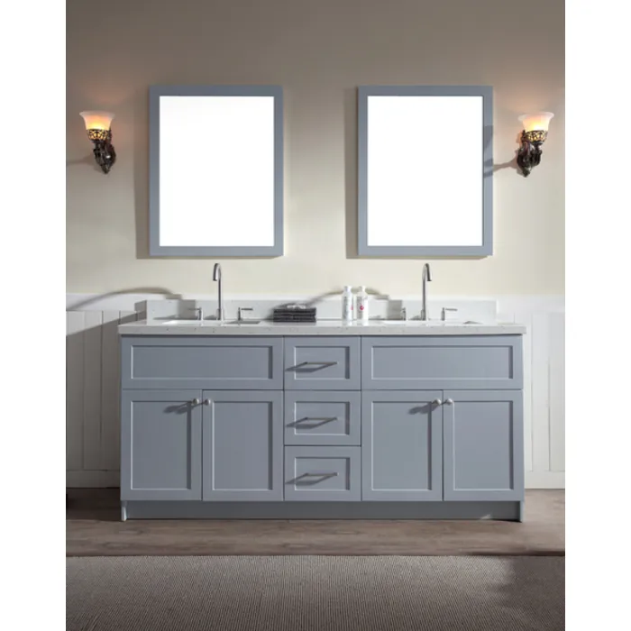 Ariel Hamlet 73" Double Sink Bathroom Vanity Set With White Quartz Countertop In Grey