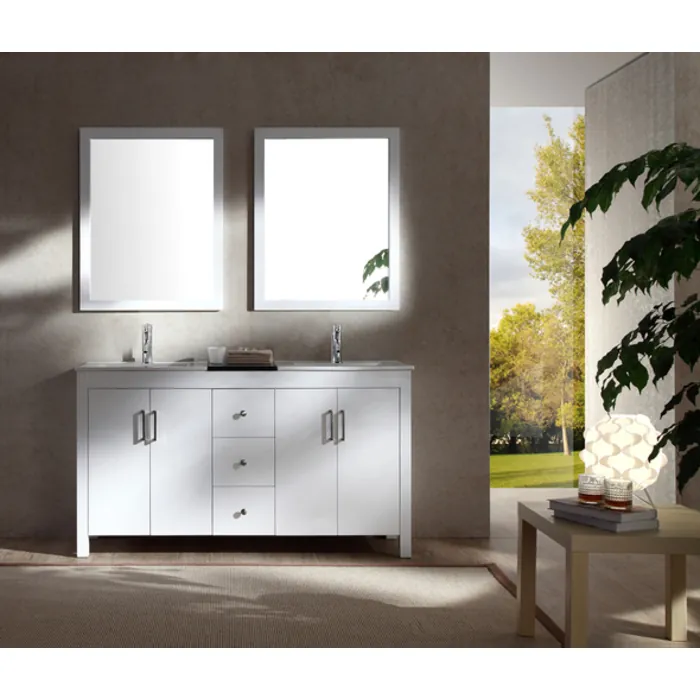 Ariel Hanson 60" Double Sink Bathroom Vanity Set In White