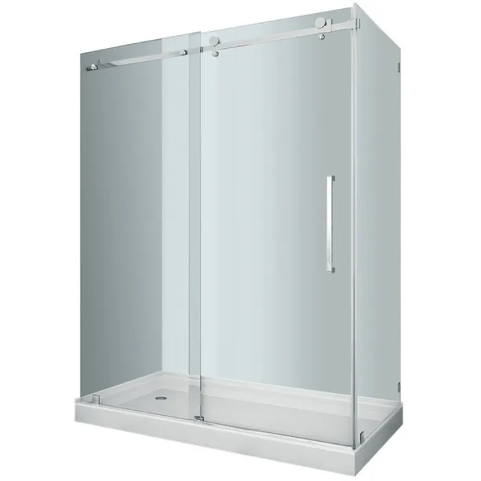 - 72 in x 35 in x 75 in completely frameless sliding corner shower enclosure
