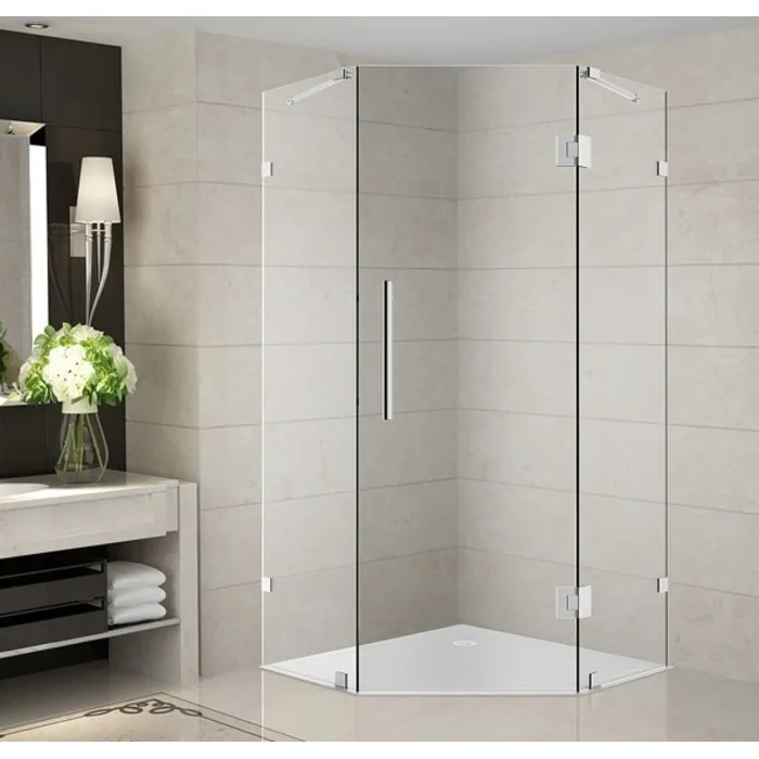 - 42 in x 42 in x 72 in completely frameless neo-angle hinged shower enclosure