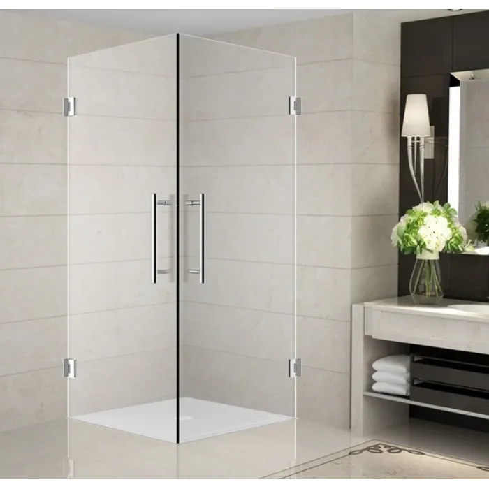 Designed for the corner space but providing a larger swinging entrance, the Vanora completely frameless square shower enclosure features a unique dual-door frameless hinge entry. The Vanora is an effective beautiful solution to maximize your bath''s space. All models are composed of 10mm ANSI-certified clear or frosted tempered glass, stainless steel, oil rubbed bronze or chrome finish hardware and premium leak-seal clear strips. Base not included.
