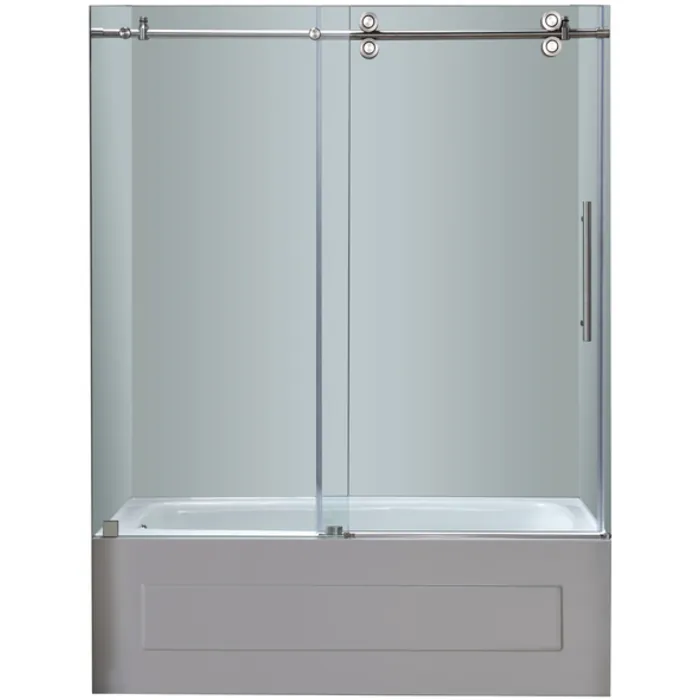 - 60 in x 60 in completely frameless sliding alcove tub-height shower door