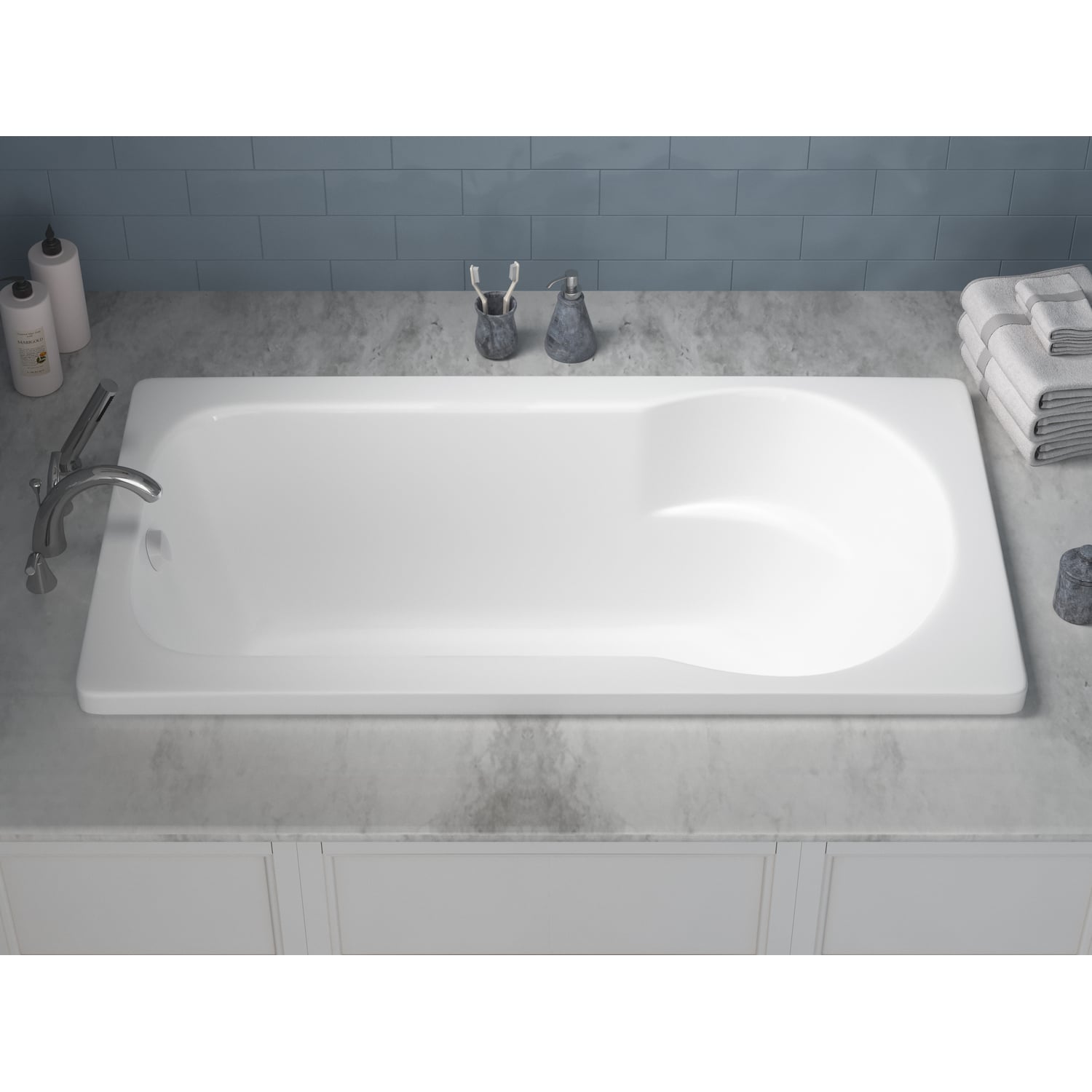 - Non-jetted deep soaking bathtub that’s easy to install. No need to run electrical wiring.
