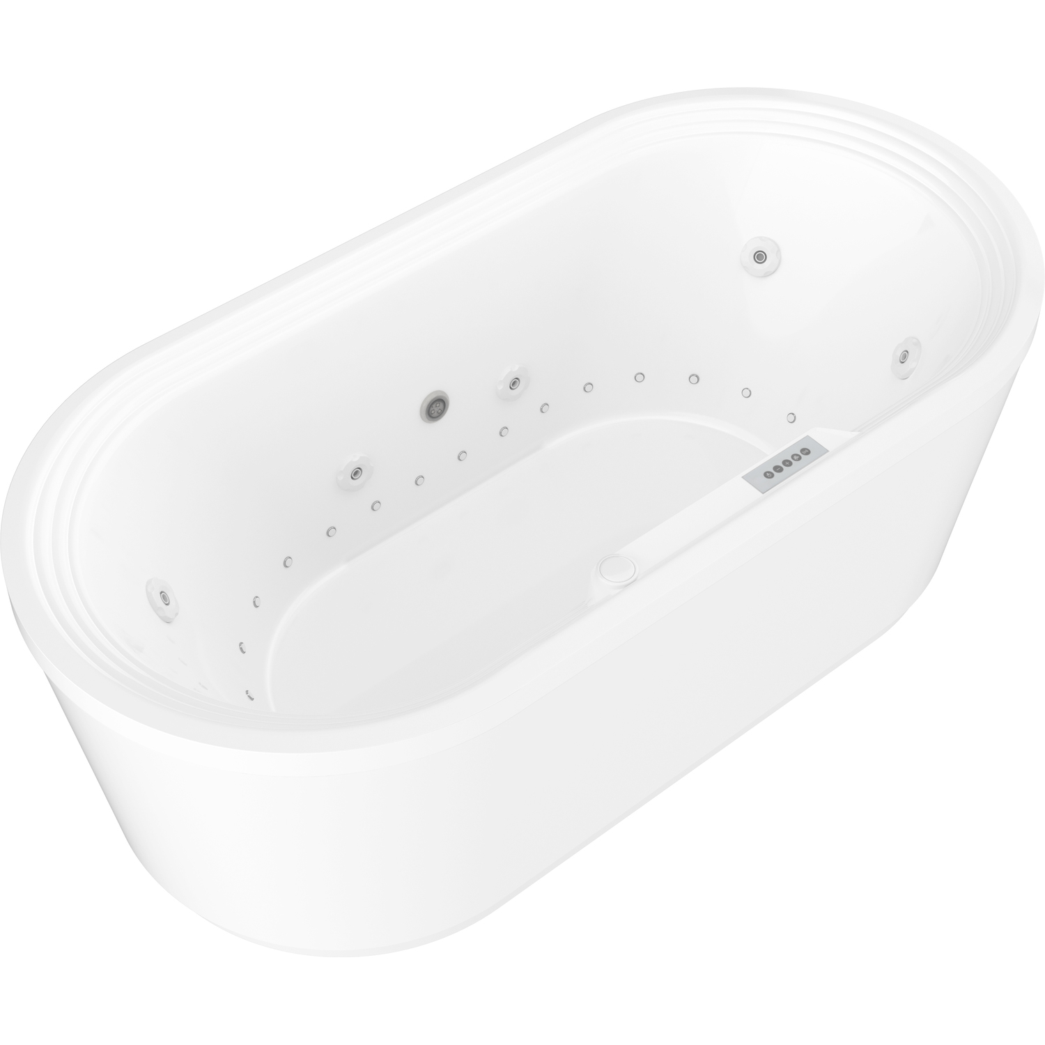 Transform your bathroom into a spa-like retreat with the Royale 5.6 ft. Whirlpool and Air Bath Tub in White from Universal Tubs. The freestanding oval tub is equipped with 24 air bubble massage injectors and eight fully adjustable and directional water jets to relieve aching muscles and stir the senses. Powered by a 1 HP water pump and a 1 HP air blower, the unit is safe to use with aromatic oils and bathing salts for extra-relaxing soaks. Additionally, an onboard aromatherapy system allows soothing fragrances to be released through the massage injectors (scent canisters sold separately). Fiberglass-reinforced acrylic construction features a nonporous high-gloss surface that's easy to clean and resists fading and staining. An Ozonator purifying system sanitizes the water while a friction heater keeps the whirlpool at a steady temperature for extended-length massage sessions.WHIRLPOOL JETTED - 8 adjustable & directional hydro-therapeutic whirlpool massage jetsAIR JETTED - 24 Acu-Stream air jets for a soothing total body aero-therapeutic massageAROMATHERAPY - Experience the deeply soothing sensation of enveloping yourself in the rich fragrance of Universal Tubs' aroma infused massage bubbles.CHROMATHERAPY - Reinvigorate your mind as well as your body by basking in the soothing radiance of Chromatherapy colored light bathingMAINTENANCE HEATER - Maintains warm and comfortable bathing temperatureO3 OZONATOR - The installed Ozonator system maintains clean plumbing for a healthy and sanitary whirlpool experienceTOUCH PAD CONTROLS - Complete control of jetted and lighting functions for a stylish control console.Marine grade acrylic with fiberglass reinforcement offers a smooth long lasting shine with superior durabilitySmooth, glossy ultra white acrylic finish with matching trimOverall dimensions: 67.375" L x 33" W x 24" HBasin dimensions: 63" L x 24" WAverage water capacity: 50 gallonsCenter drain with right side pump locationIAPMO Listed