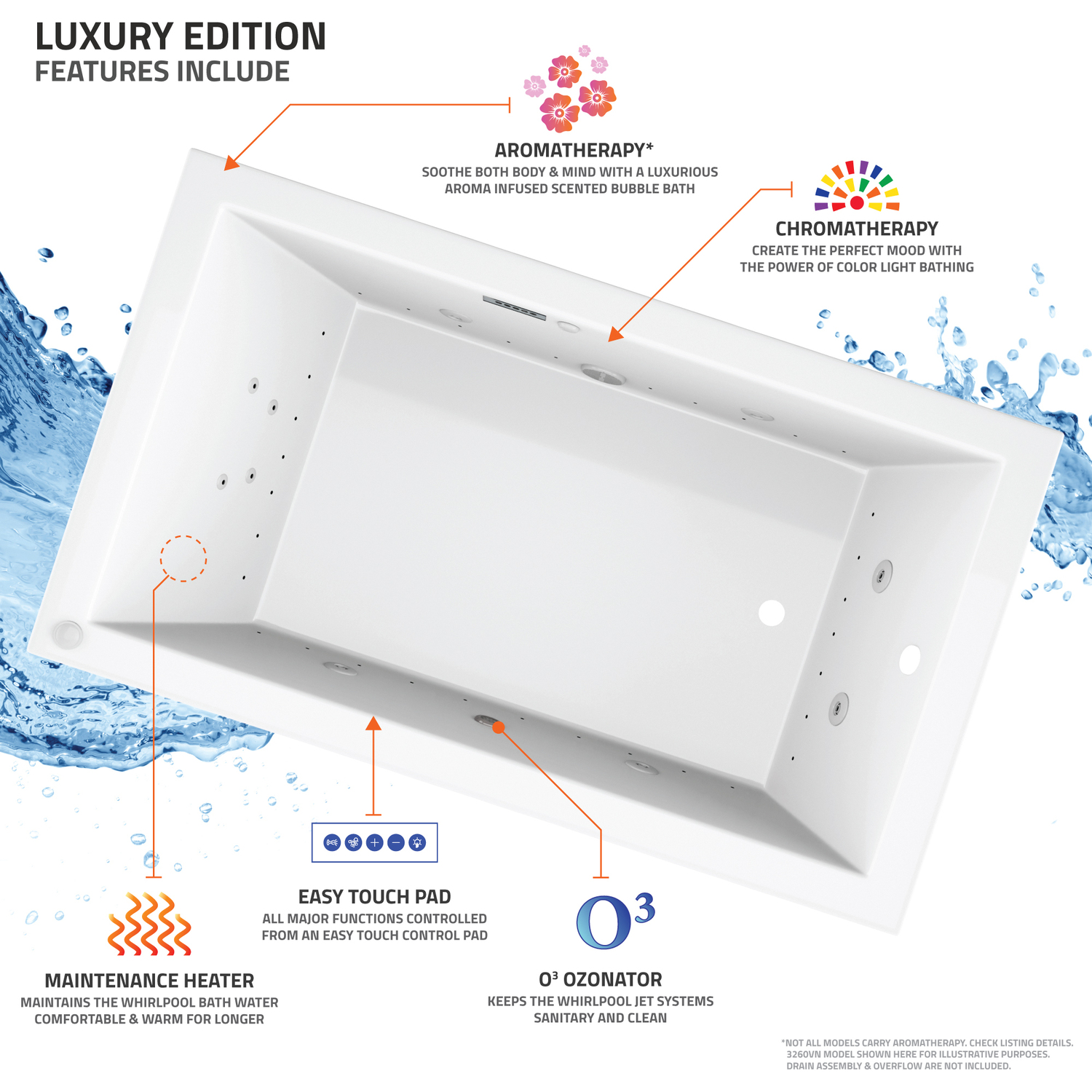 - AROMATHERAPY - Experience the deeply soothing sensation of enveloping yourself in the rich fragrance of Universal Tubs' aroma infused massage bubbles.