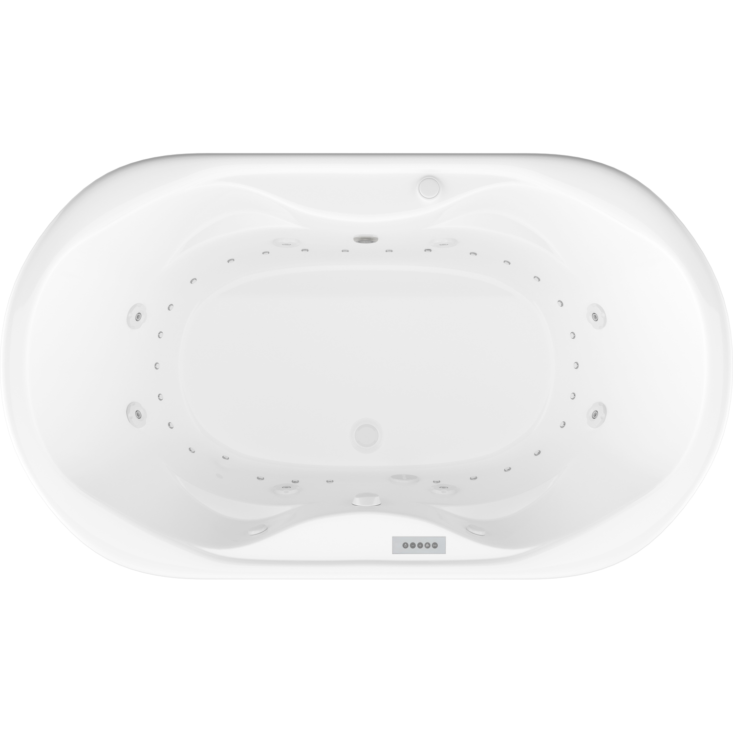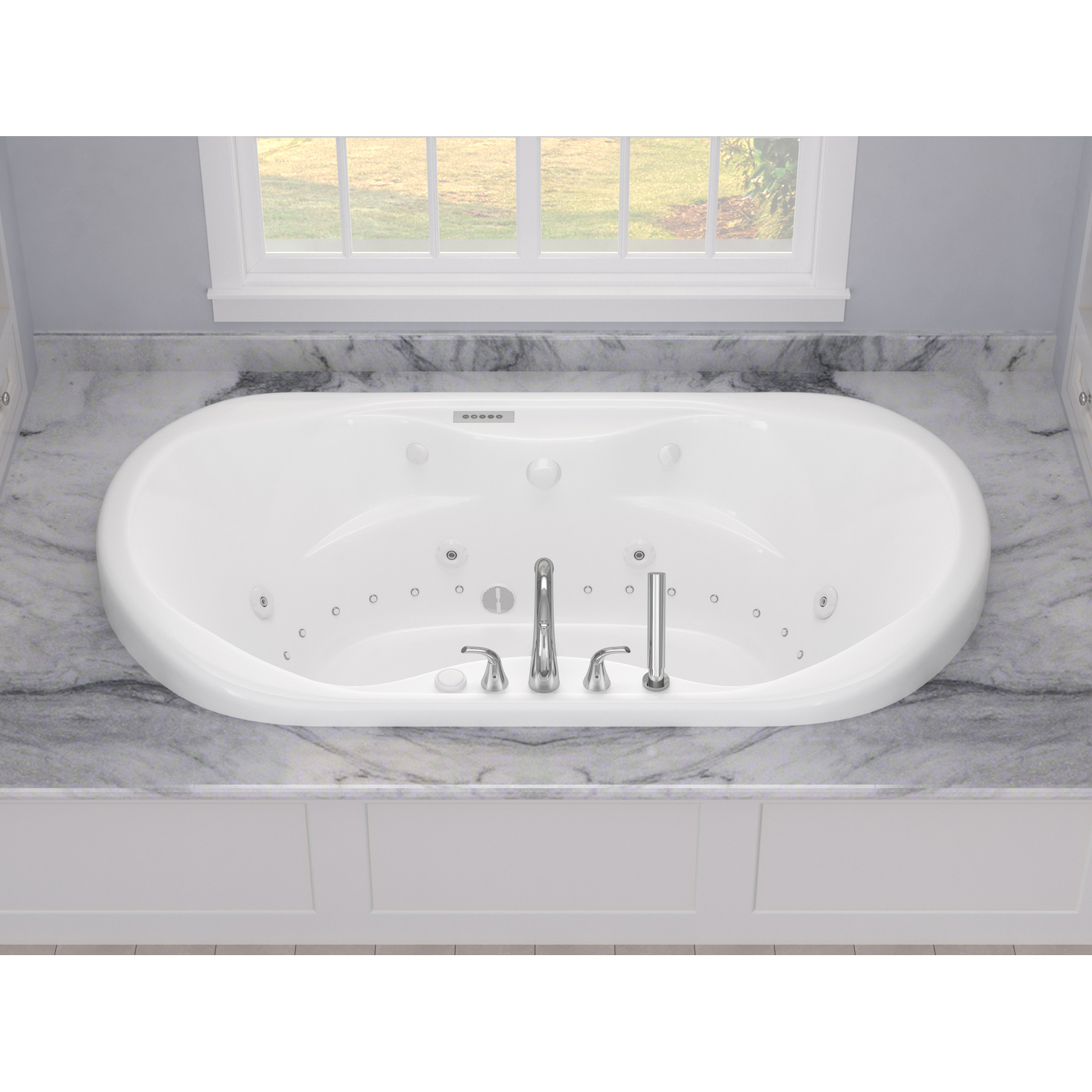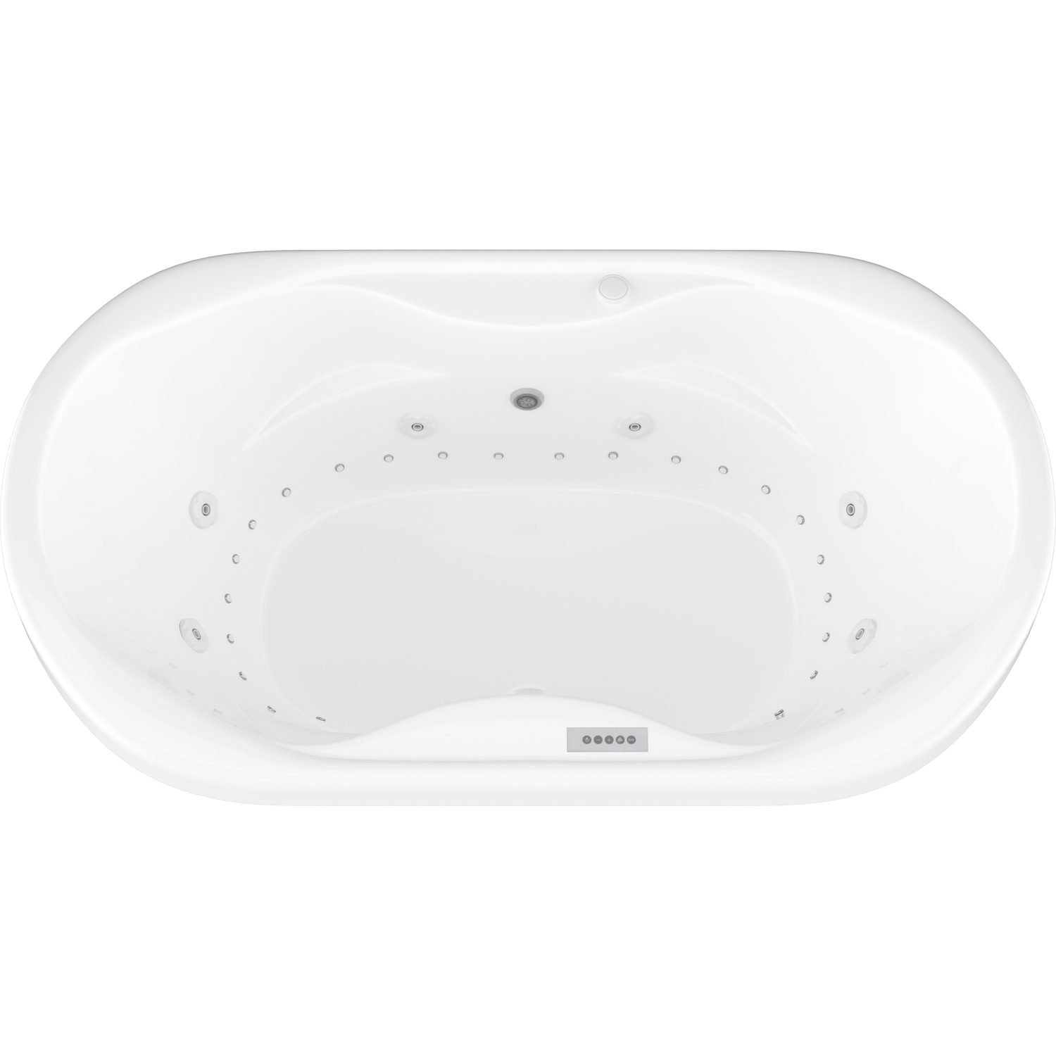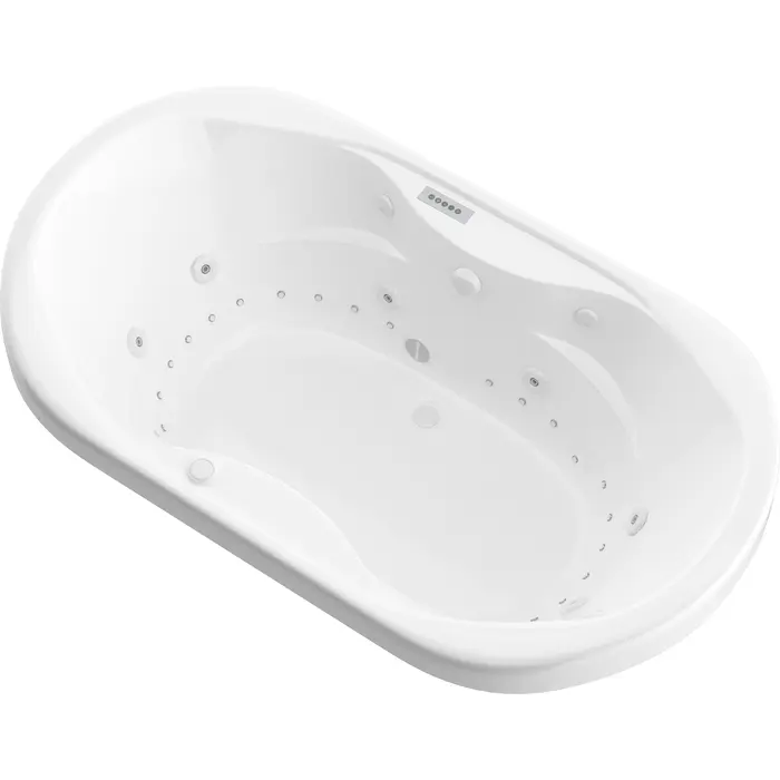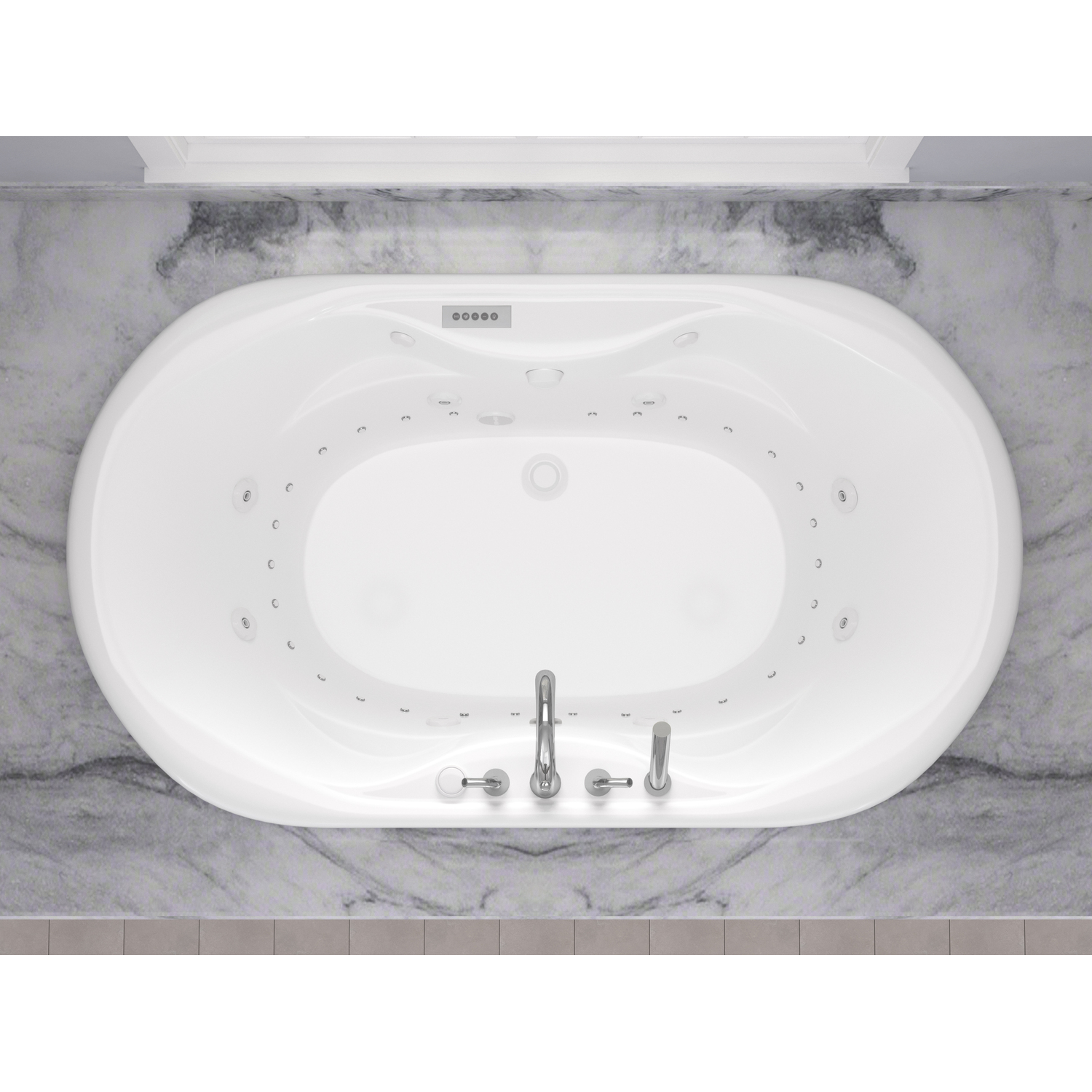 Indulgenceseries is equipped with two cockpits, providing molded arm and back support. Drop-In installation ensures that Whirlpool bathtub will fit into various styles of bathroom settings. Increased height of side edges creates additional support, while adding comfort. Creates an elegant, functional centerpiece for your bathroom and the focal point for relaxation. Aesthetically appealing and physically soothing merging both worlds into a triumph of elegance.WHIRLPOOL JETTED - 8 adjustable & directional hydro-therapeutic whirlpool massage jetsAIR JETTED - 25 Acu-Stream air jets for a soothing total body aero-therapeutic massageAROMATHERAPY - Experience the deeply soothing sensation of enveloping yourself in the rich fragrance of Universal Tubs' aroma infused massage bubbles.CHROMATHERAPY - Reinvigorate your mind as well as your body by basking in the soothing radiance of Chromatherapy colored light bathingMAINTENANCE HEATER - Maintains warm and comfortable bathing temperatureO3 OZONATOR - The installed Ozonator system maintains clean plumbing for a healthy and sanitary whirlpool experienceTOUCH PAD CONTROLS - Complete control of jetted and lighting functions for a stylish control console.Marine grade acrylic with fiberglass reinforcement offers a smooth long lasting shine with superior durabilitySmooth, glossy ultra white acrylic finish with matching trimOverall dimensions: 71.125" L x 41.25" W x 25" HBasin dimensions: 66.25" L x 28.375" WAverage water capacity: 70 gallonsCenter drain with left side pump locationIAPMO Listed