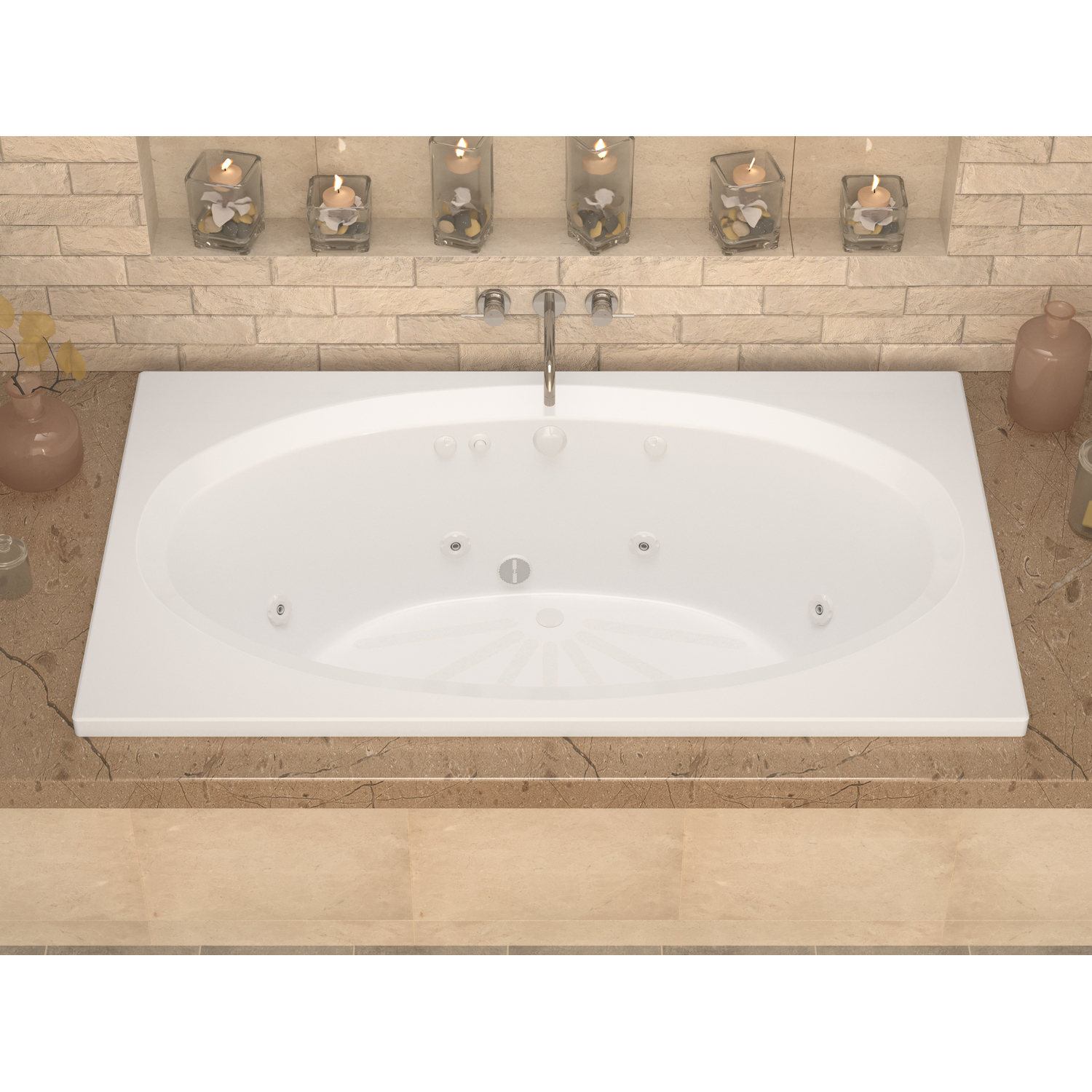 Vogue bathtub series features classic rectangular design with a soft-edge oval opening. Classic, round-opening style will add a hint of luxury to any bathroom setting. Creates an elegant, functional centerpiece for your bathroom and the focal point for relaxation. Aesthetically appealing and physically soothing merging both worlds into a triumph of elegance.WHIRLPOOL JETTED - 8 adjustable & directional hydro-therapeutic whirlpool massage jetsMAINTENANCE HEATER - Maintains warm and comfortable bathing temperatureRaised easy-push buttons and whirlpool pressure controlsMarine grade acrylic with fiberglass reinforcement offers a smooth long lasting shine with superior durabilitySmooth, glossy ultra white acrylic finish with matching trimOverall dimensions: 70.75" L x 41.625" W x 23" HBasin dimensions: 60.5" L x 30.75" WAverage water capacity: 55 gallonsCenter drain with left side pump locationIAPMO Listed10 YEAR WARRANTY - Bathtub shell is protected with a limited 10 year warranty against manufacturer defects; 1 year for parts replacement; 90 days for laborCurbside delivery only. The carrier will only unload the bathtub off the truck and is not responsible for carrying package inside home.