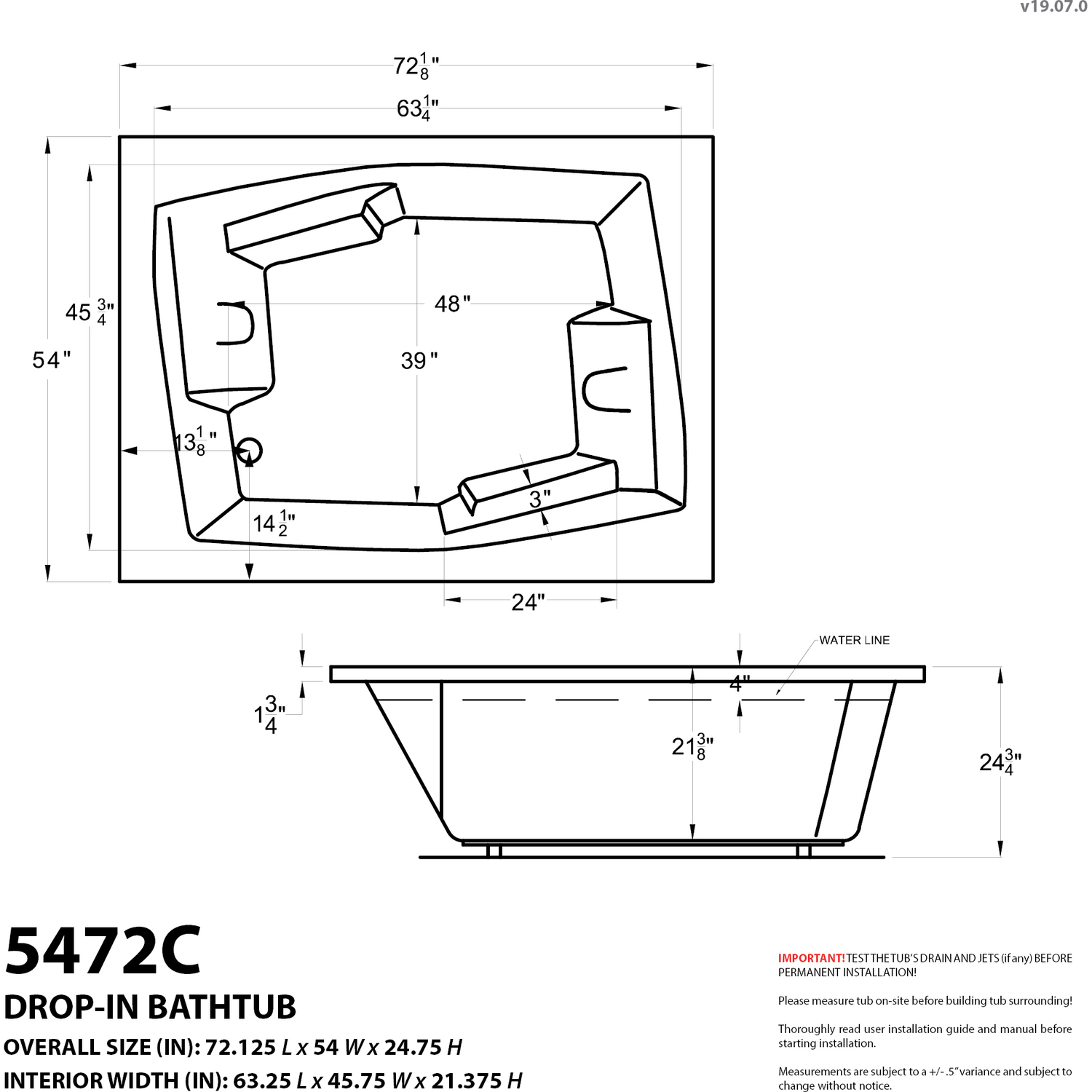 - Basin dimensions: 63.25" L x 45.75" W