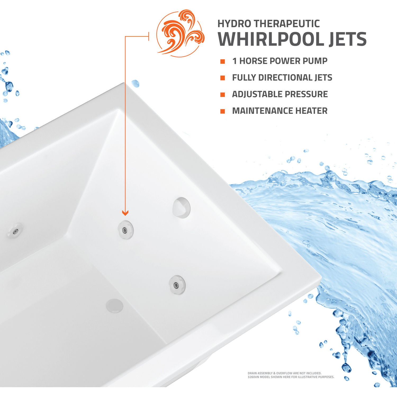 - WHIRLPOOL JETTED - 8 adjustable & directional hydro-therapeutic whirlpool massage jets