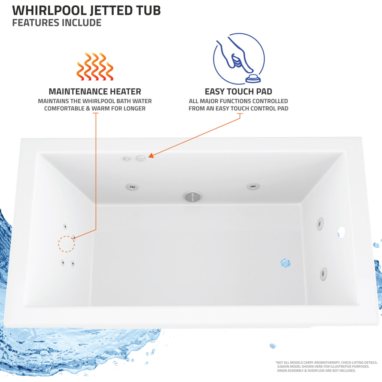- MAINTENANCE HEATER - Maintains warm and comfortable bathing temperature