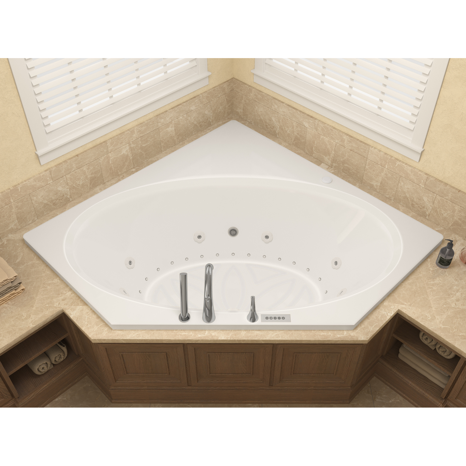 Venus series features corner construction with an oval opening, while round edges of the opening ensure safety and durability. Creates an elegant, functional centerpiece for your bathroom and the focal point for relaxation. Aesthetically appealing and physically soothing merging both worlds into a triumph of elegance.WHIRLPOOL JETTED - 8 adjustable & directional hydro-therapeutic whirlpool massage jetsAIR JETTED - 27 Acu-Stream air jets for a soothing total body aero-therapeutic massageAROMATHERAPY - Experience the deeply soothing sensation of enveloping yourself in the rich fragrance of Universal Tubs' aroma infused massage bubbles.CHROMATHERAPY - Reinvigorate your mind as well as your body by basking in the soothing radiance of Chromatherapy colored light bathingMAINTENANCE HEATER - Maintains warm and comfortable bathing temperatureO3 OZONATOR - The installed Ozonator system maintains clean plumbing for a healthy and sanitary whirlpool experienceTOUCH PAD CONTROLS - Complete control of jetted and lighting functions for a stylish control console.Marine grade acrylic with fiberglass reinforcement offers a smooth long lasting shine with superior durabilitySmooth, glossy ultra white acrylic finish with matching trimOverall dimensions: 82.5" L x 62.125" W x 23" HBasin dimensions: 60.75" L x 32" WAverage water capacity: 40 gallonsCenter drain with left side pump locationIAPMO Listed